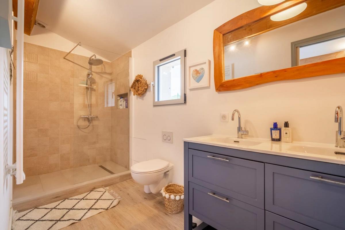 Nestled on a flat, sun-drenched plot, the property offers both comfort and functionality.The main house features a spacious open-plan kitchen, dining and living area, complemented by an additional TV room or office. The ground floor also includes a guest bedroom with an en-suite bathroom and a laundry room.