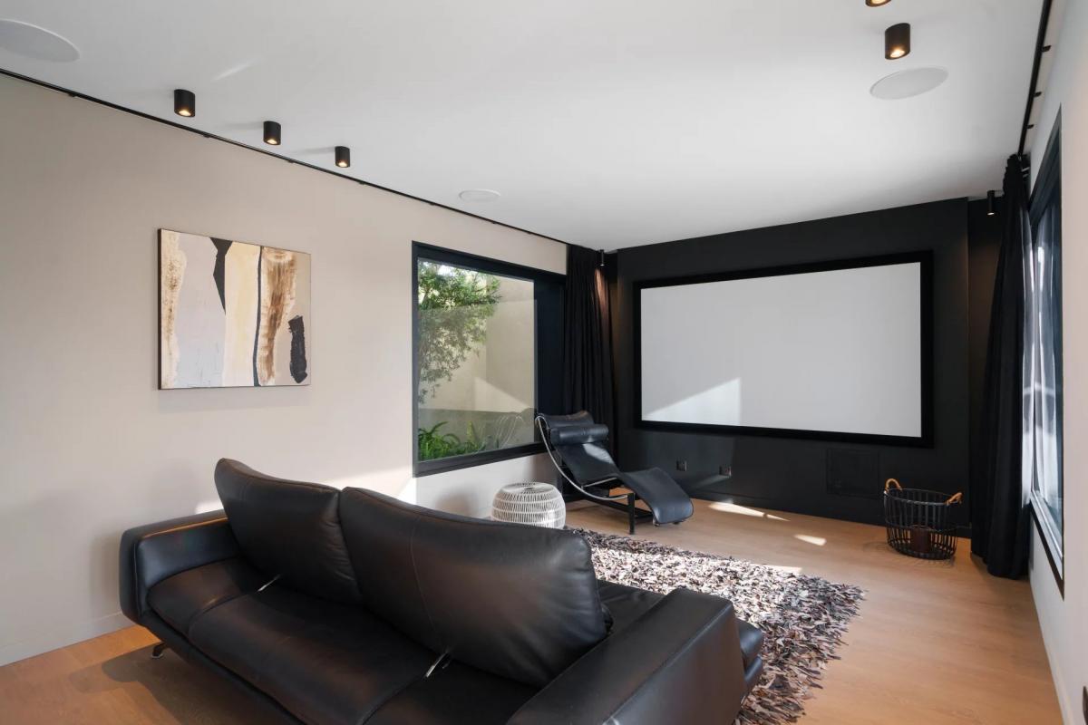 The landscaped grounds include a large infinity pool with sun-drenched terraces and a flat garden, perfect for relaxing or entertaining in the Cote d'Azur sunshine. Additional features include a garage with an electric car charger, modern energy-efficient systems, a fully integrated irrigation system, outdoor lighting throughout the garden, and premium finishes throughout the property.