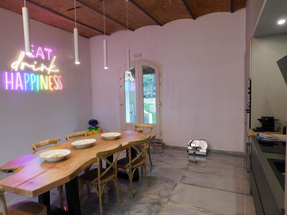 Originally a 1700s Leopold-style farmhouse, the property has been carefully renovated to enhance its elegance and charm, while preserving the warm atmosphere typical of Tuscan tradition. The interiors are spread over two floors and include large living areas, eat-in kitchens, lounges with fireplaces, and a vast 130 sqm living room. The sleeping area features eight double bedrooms, each with a private bathroom, distributed between the two main buildings to ensure maximum privacy and comfort. All rooms are equipped with hot/cold air conditioning and electronic lighting activation systems.