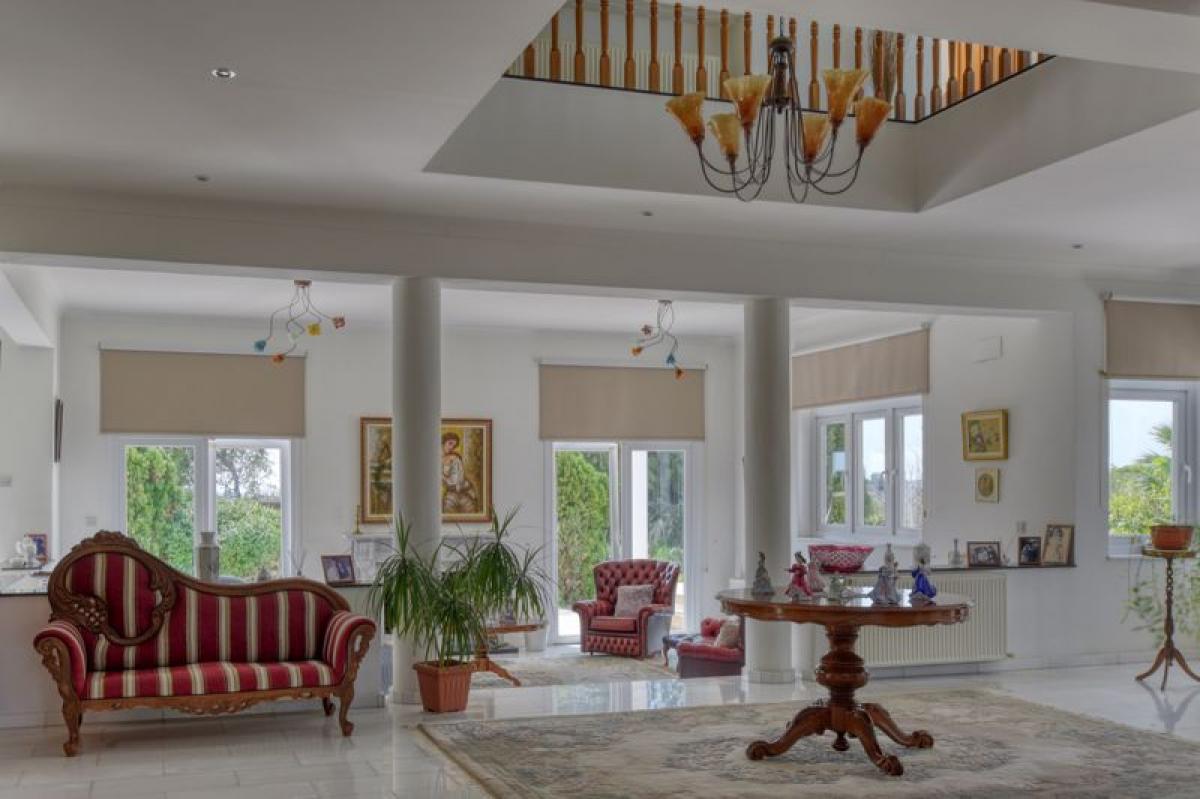 Five Bedroom Villa with Separate Bungalow For Sale in Oroklini with Land DeedsA well maintained family home located on a large plot in Oroklini, just a short distance to local amenities and the beach. The property has a spacious front reception which leads you to the open plan living, dining and fully fitted kitchen area with a separate utilities room. In the reception there is a marble spiral staircase leading up to the first floor where you will find five double bedrooms, two of them boasting ensuite facilities, and a family bathroom. There are six balconies which are accessible from various rooms of the villa with beautiful country and mountain views. Heading down to the huge open plan basement you will find a one bedroom maids quarters along will a fully equipped bathroom and utilities rooms. Also in the basement there is two storage rooms and a gym. Outside there is a private pool with an electric cover and you have the choice of three separate pergola areas to sunbathe. The property is well secured with CCTV, alarms systems in and out, and electric front gates.