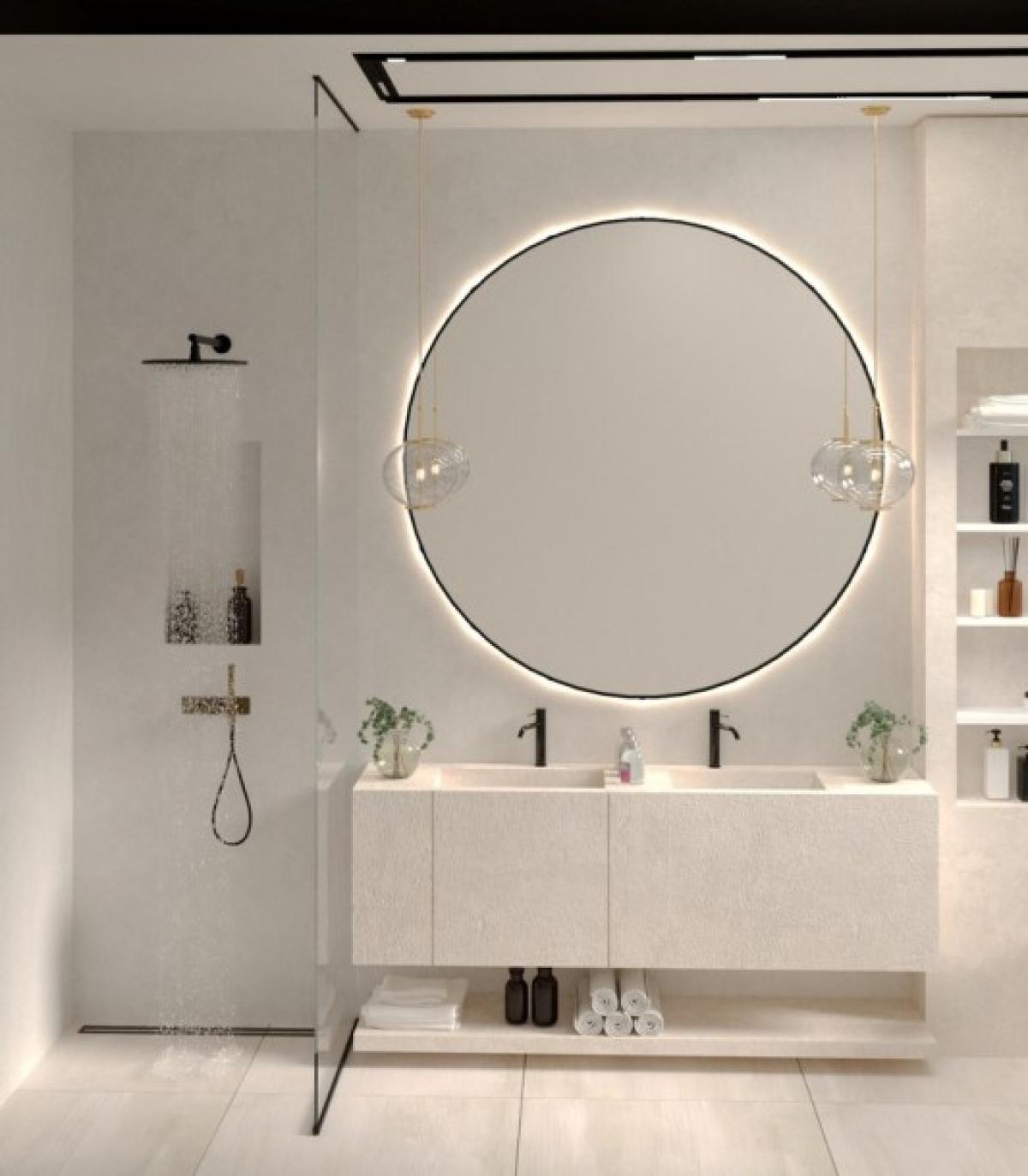 * Ceramic tiles, inbuilt ceramic sinks, and high-end metal accessories in the bathroom.