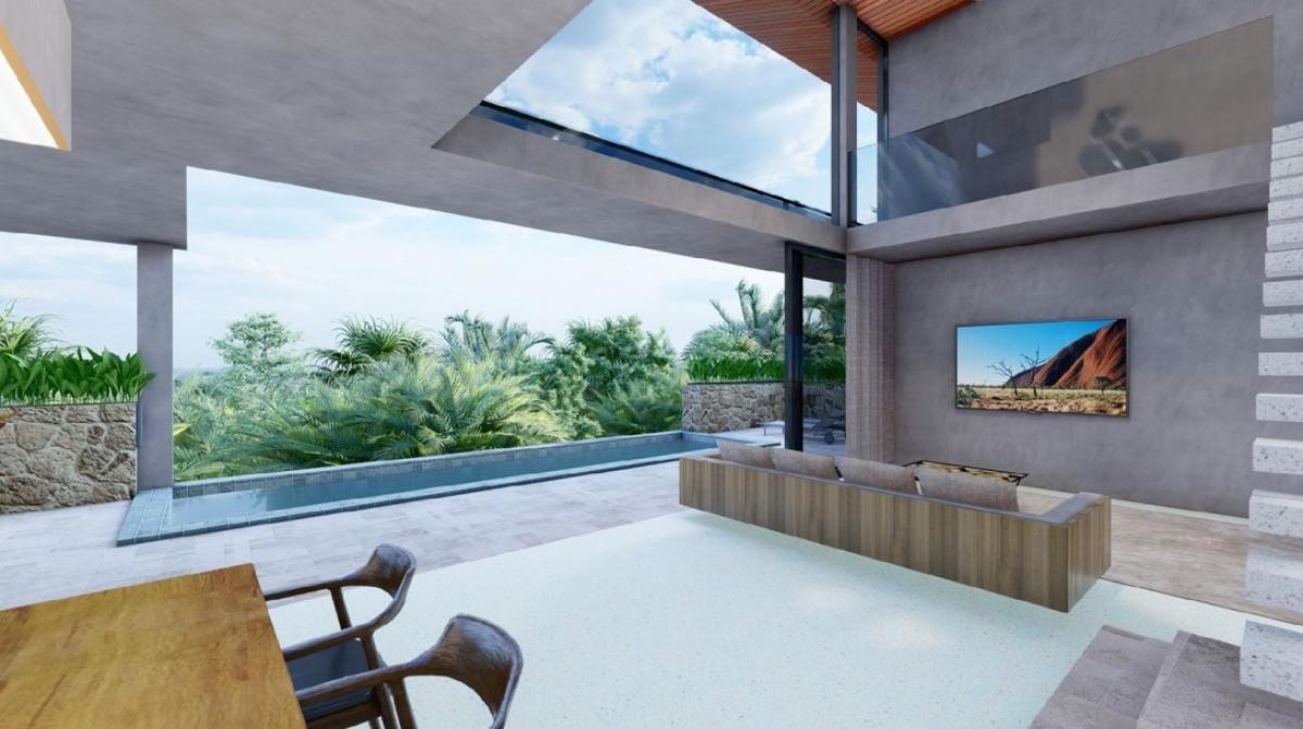 On the second floor, you'll find two additional bedrooms, each with its own bathroom and access to a private balcony, perfect for enjoying panoramic views of the surrounding jungle and sea.