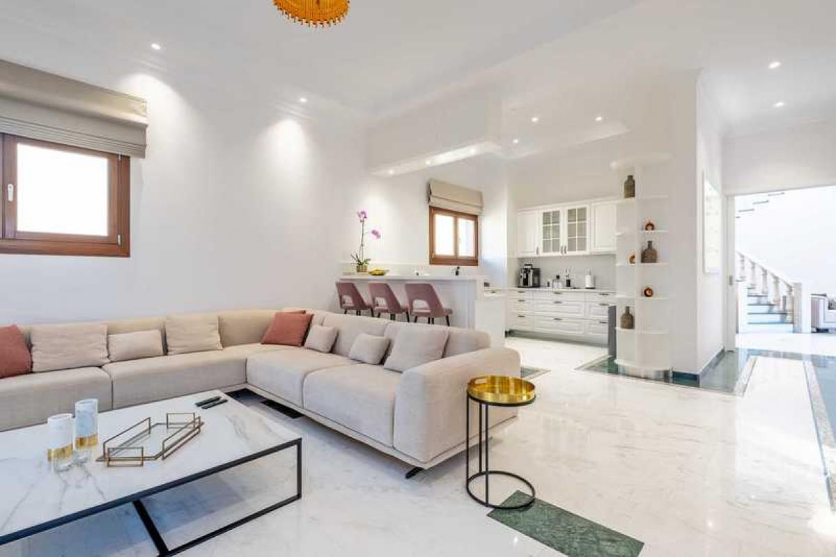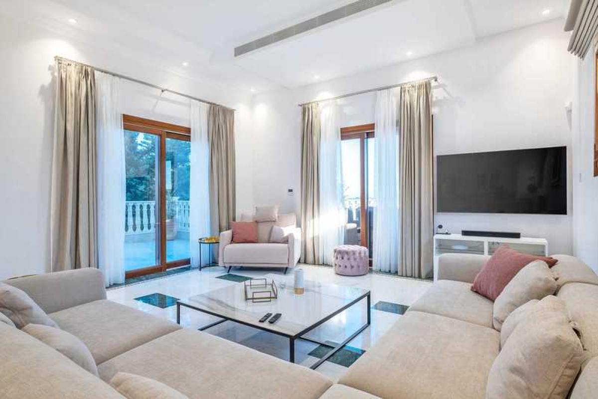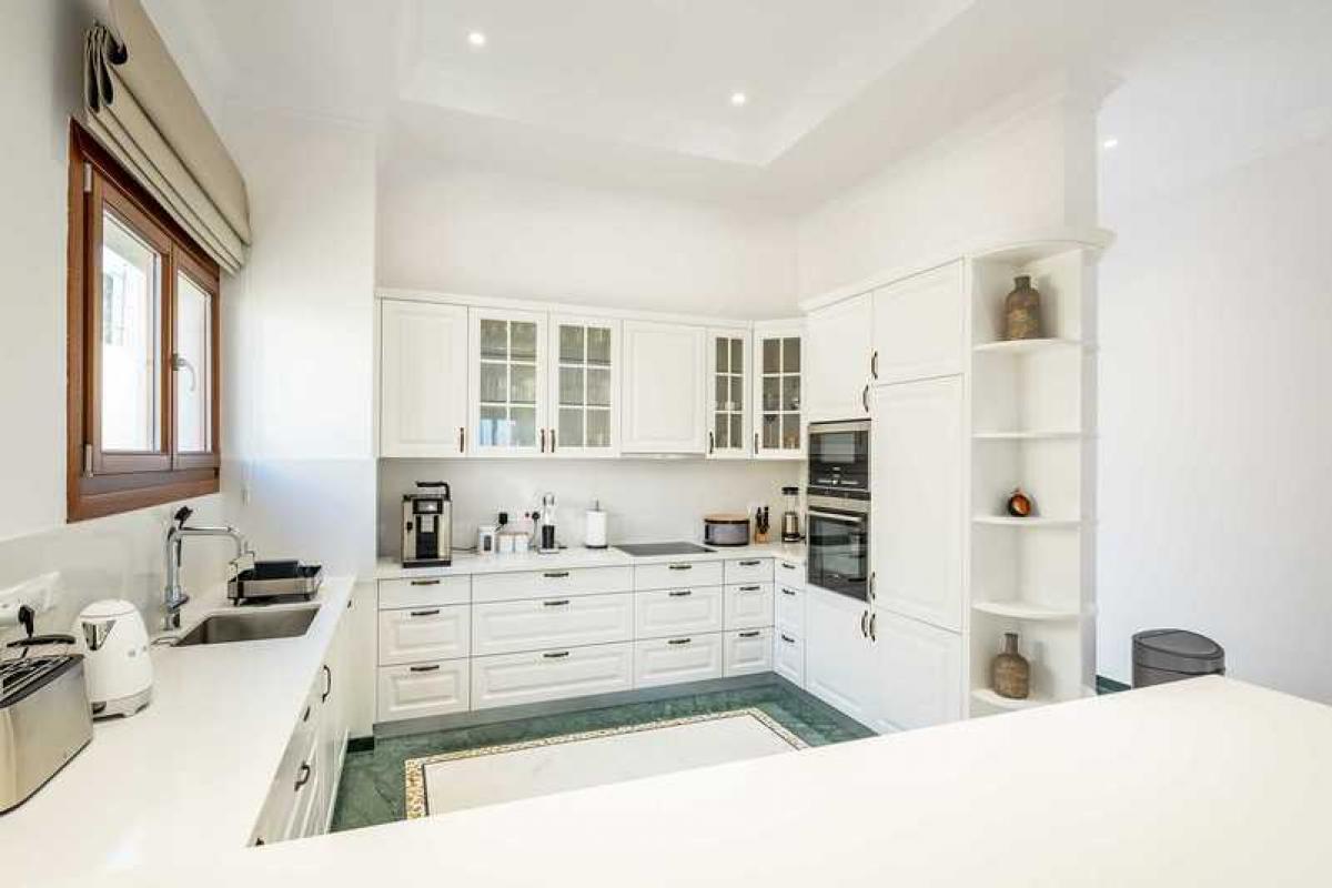 Welcome to this luxurious villa, a true masterpiece of elegance and sophistication. Step inside and be captivated by the exquisite design and premium facilities it has to offer. The interior boasts a harmonious blend of marble, mosaic, and granite, creating a sense of opulence in every room. The Italian superior quality tiles in the bathrooms add a touch of class and style. This house spares no expense in ensuring utmost comfort and convenience. With a maid's bedroom and two separate solid wood custom-made kitchens, it accommodates both family living and professional assistance seamlessly. Enjoy the warmth of underfloor heating and the coolness of air conditioning in all areas throughout the year.Reference number: 7140