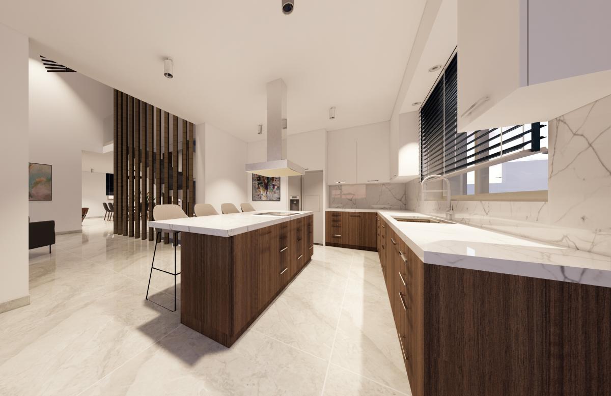 This Three-story residence in a quiet and prestigious neighbourhood features 4 spacious bedrooms, 5 bathrooms (3 of which are en-suite), unobstructed sea views, designated parking area, private swimming pool, beautifully landscaped garden and built with high-end specifications.