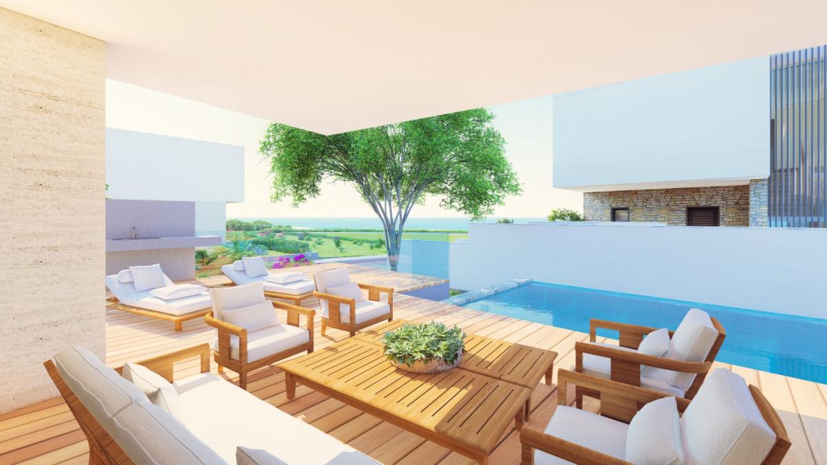 This is a unique modern beachfront development (under construction in 3 phases), situated in Chloraka, on the outskirts of Paphos. It consists of 3, 4 and 5-bedroom villas for sale next to a 5-star beach hotel and close to a plethora of Paphos' most popular attractions and amenities, such as the Paphos tourist area, antiquities, the harbour and the Kings Avenue Mall.The finishes and fixtures of this project have been carefully selected by a team of professional interior designers, reflecting on the high caliber and quality of architectural design. The superior selection will provide residents with the ultimate in convenience, comfort and luxury. Beyond the attention to detail to be found in every villa, the residences also have the advantage of spacious terraces, private swimming pools and floor-to-ceiling windows, further creating a sense of openness, and providing the perfect space to entertain.
