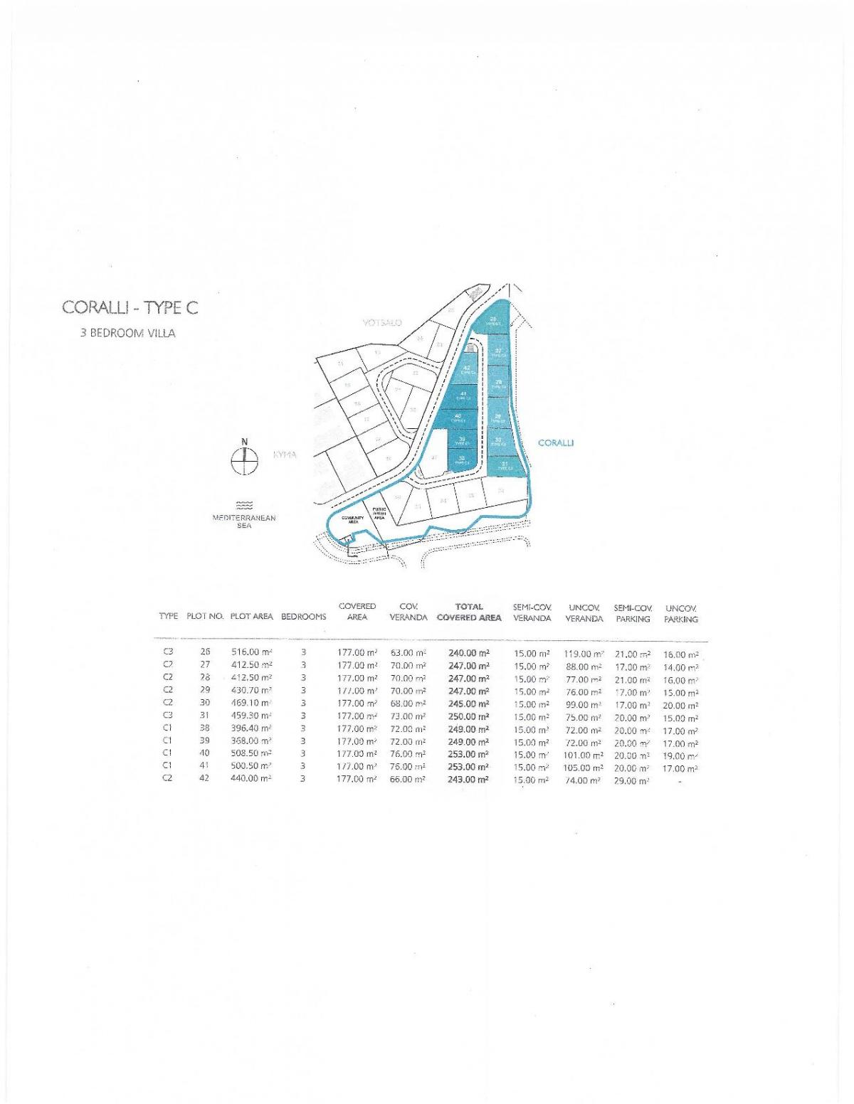 This 3 bedroom villa comprises an open plan living / dining area opening onto a large veranda, a separate kitchen and a guest WC on the ground floor. Three bedrooms with access to a covered balcony are on the first floor, with a family shower and en suite facilities in the master bedroom. A semi covered roof terrace with BBQ area completes the property.