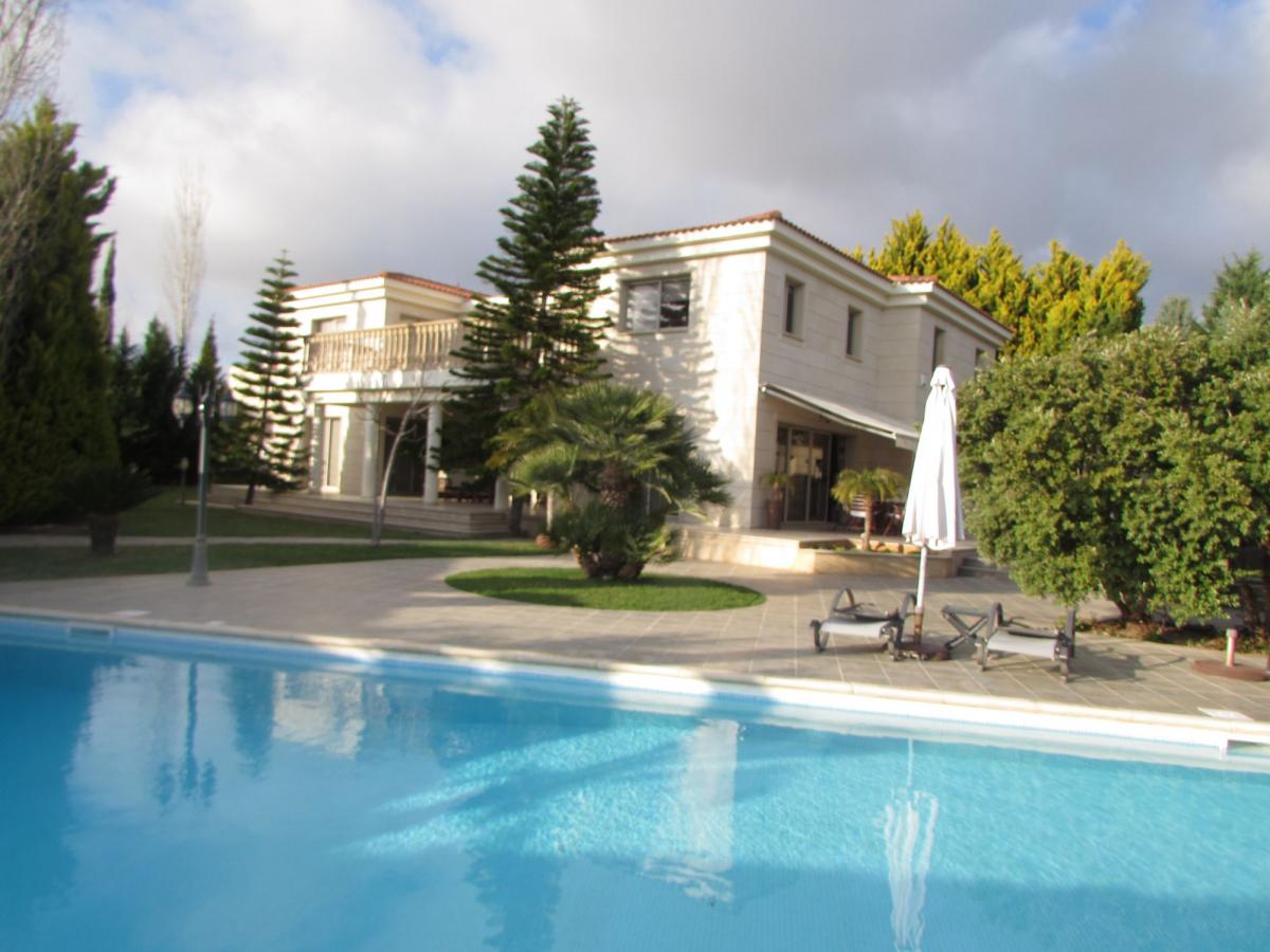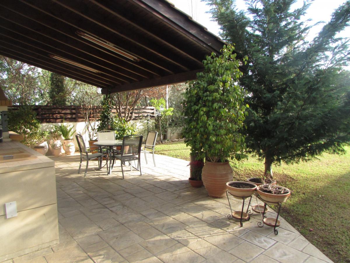 Luxury, spacious villa situated in an outstanding location in the Lofos area of Tala and set on a large, fenced plot with easy maintenance mature garden, 12 x 4 m private swimming pool, BBQ area and double garage.On the ground floor is a large living room, dining room, separate fully fitted kitchen with breakfast / TV sitting area, laundry and storage room, guest WC and an en suite double bedroom. On the first floor are 5 more bedrooms, a family bathroom, kitchenette / sitting area and a large balcony accessed by three of the bedrooms. One bedroom has en suite shower, while the large master bedroom has a walk-in closet and spacious bathroom with corner bathtub and separate shower.