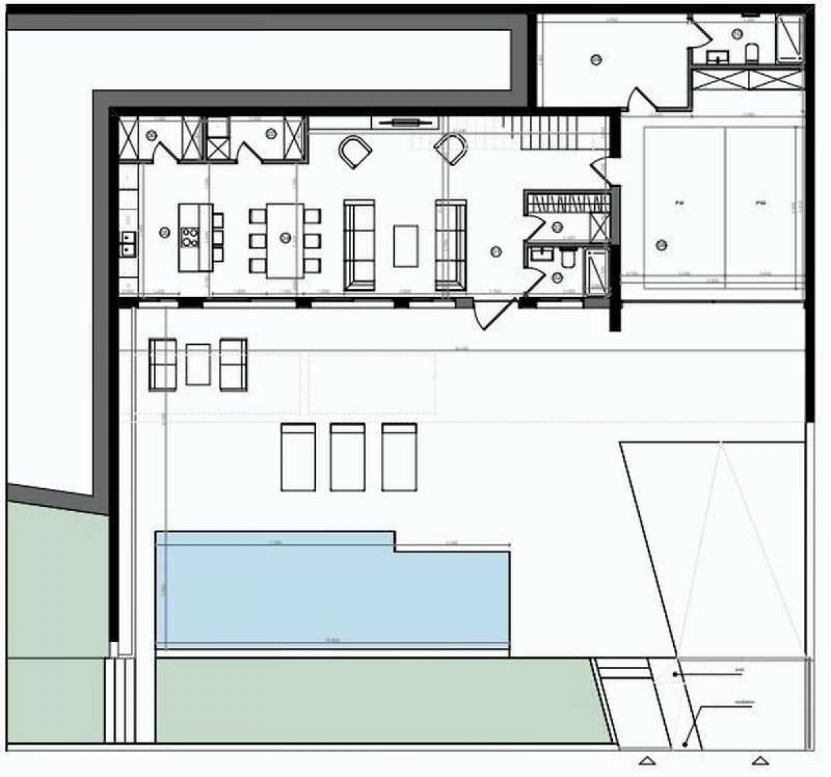 The villa stands on a plot of 536m2, has an internal covered area of 184m2 and a covered veranda 37m2.