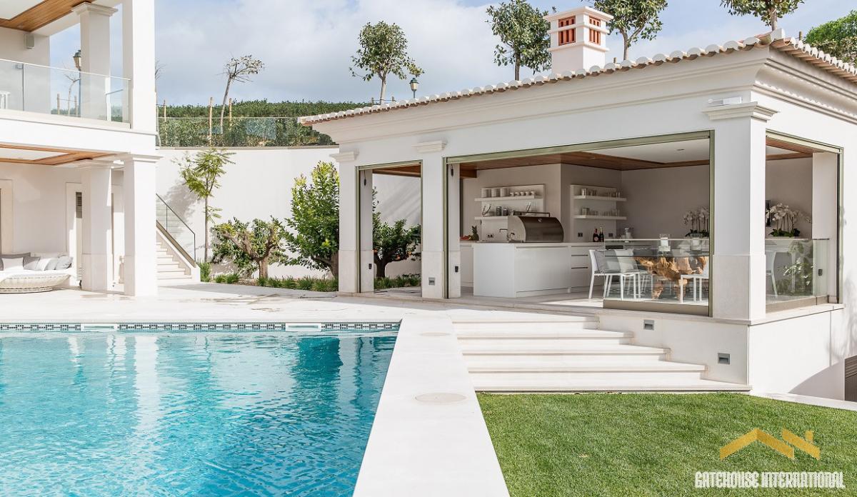 Luxury West Algarve Villa in Santo Antonio Golf Resort - this south-facing 5-bedroom villa measuring 572m2 has a heated swimming pool plus garage and sits on a plot of 1,760m2 with panoramic views over the golf course. The villa has been built to a very high standard and is equipped with the latest high-tech appliances and comprises a reception hall, visitors cloakroom, lounge and dining room, kitchen and breakfast room, laundry room, home cinema room and 5 bedroom suites. Outside, there is a ground floor and 1st floor terraces, plus an outside separate dining and kitchen area ideal for entertaining. Highlights include a heated saltwater pool, excellent views, underfloor heating, a fully equipped kitchen furnished with new contemporary furniture, a cinema, automatic gates, solar panels, electric shutters and a home automation system to manage all the electronics in the house from a single device. it also offers an extensive outdoor entertainment and leisure area, which includes the gardens, pool terrace and an outdoor kitchen with BBQ. Garage and private parking. in brief: - reception hall - lounge and diner - kitchen and breakfast room - laundry room - 5-bedroom suites - cinema room - outside covered dining and kitchen - heated pool - garageFeatures