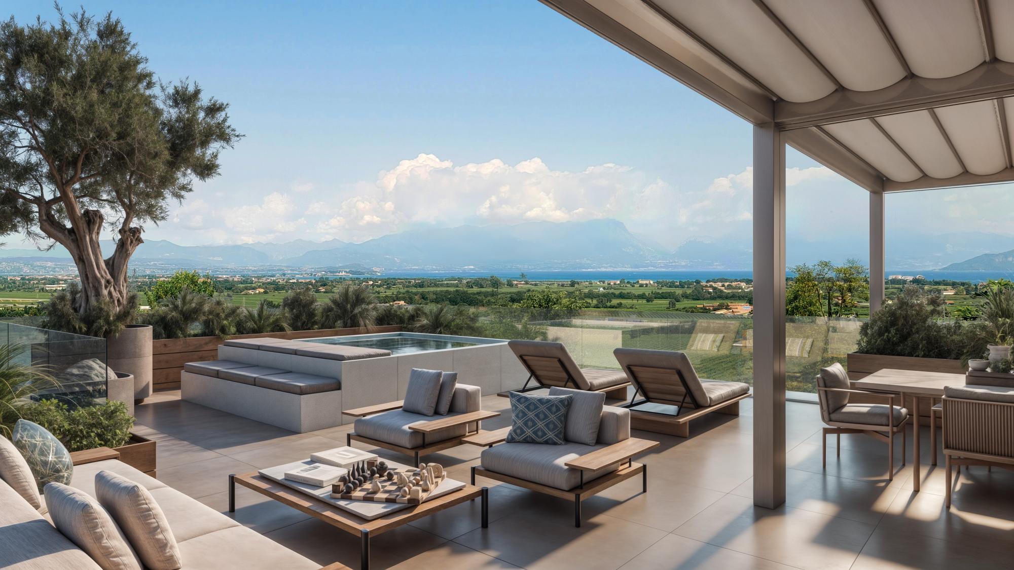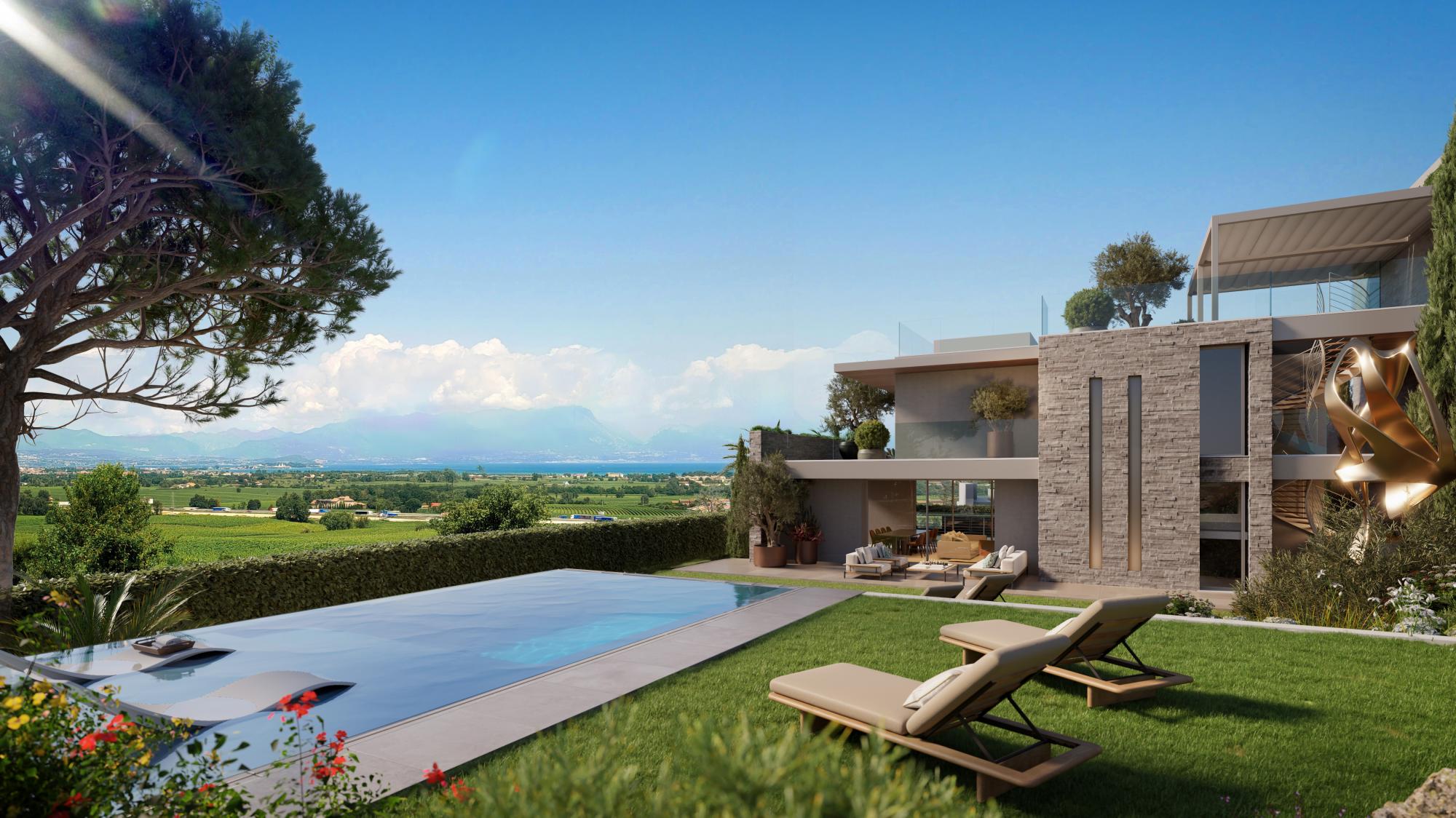 Villa A is one of six exclusive luxury villas within a prestigious new development in Peschiera del Garda. Surrounded by the Lugana vineyards and positioned to capture unobstructed views of Lake Garda, the villa sits on a large private landscaped garden featuring an infinity-edge pool with in-water sun loungers.
