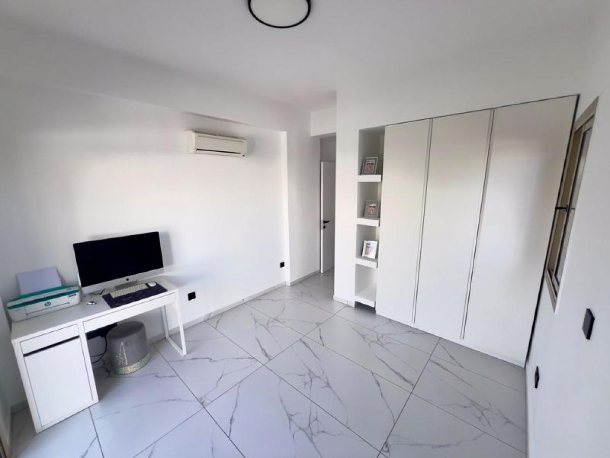 Set on an impressive 1000m2 plot, the outdoor area showcases a beautifully maintained garden with 30 palm trees, vibrant flowers, and mature fruit trees. The large 12x5m swimming pool provides ample space for relaxation and entertaining. Parking is available for up to five cars.