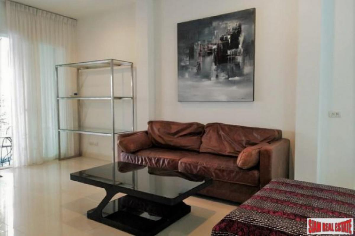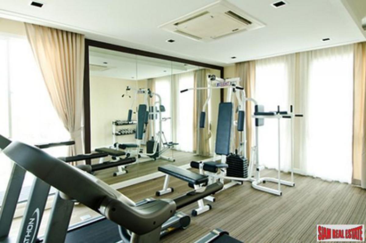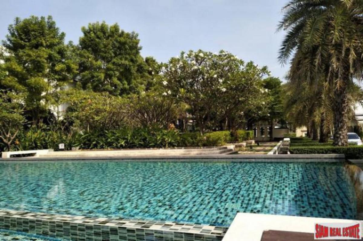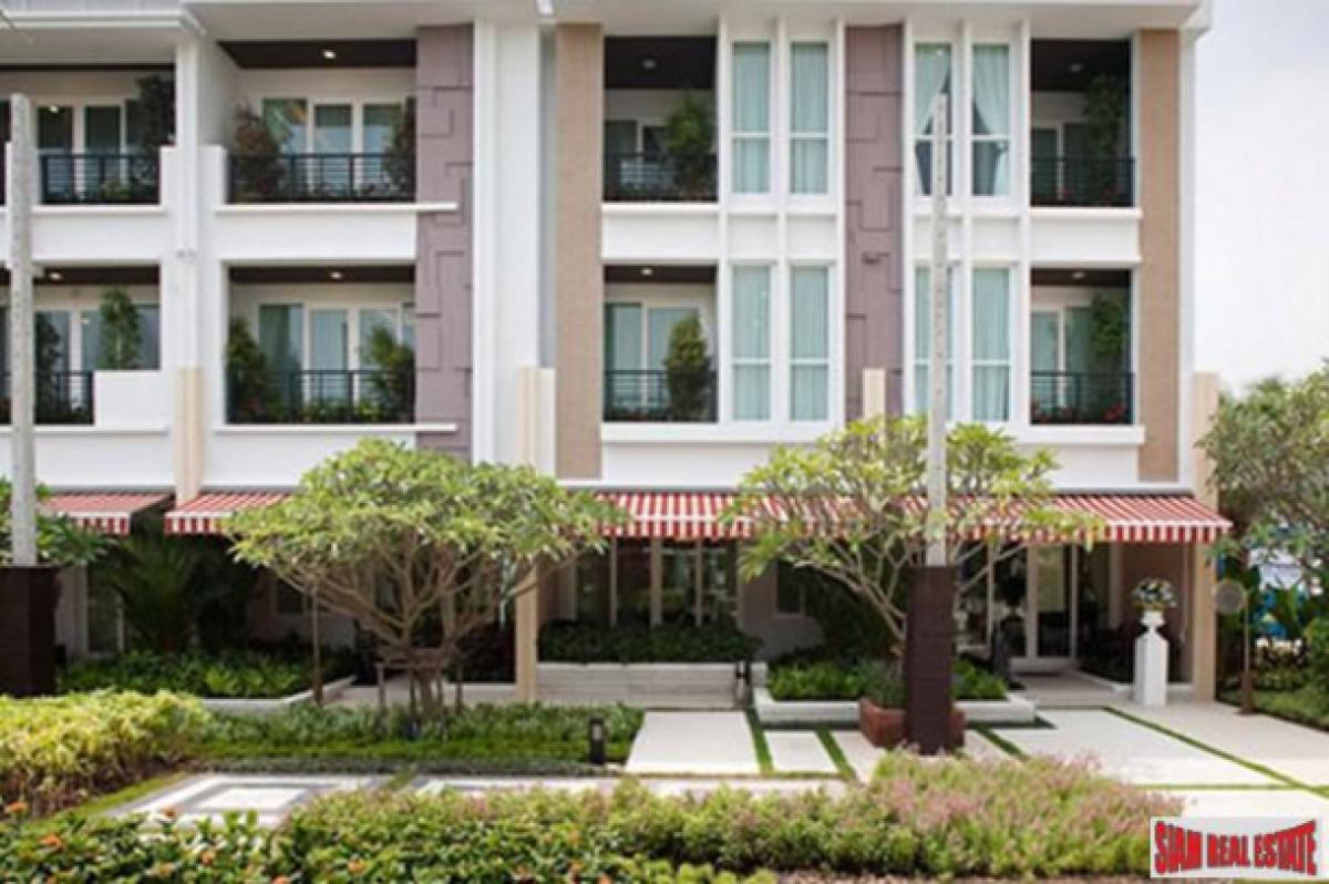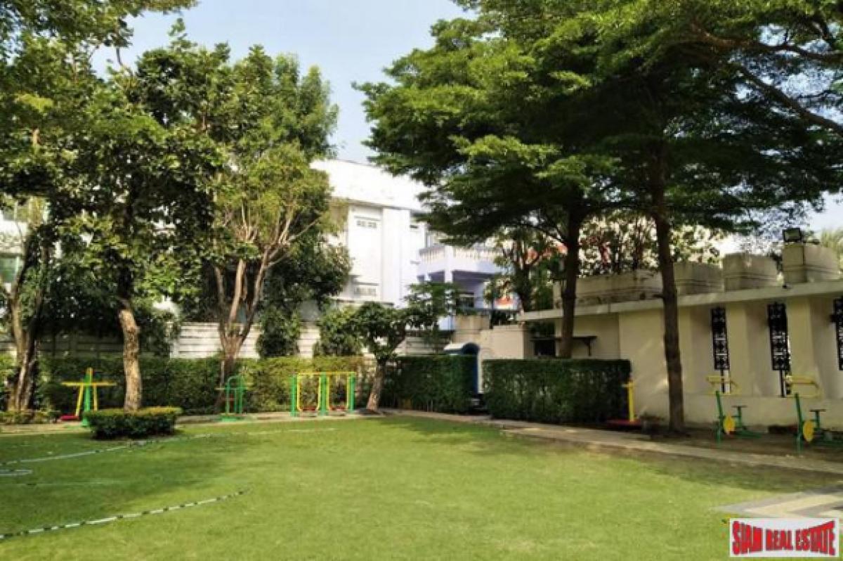 A wonderful family style house is for sale in the Baan Klang Muang S-Sense Rama 9-Ladprao. This is a three bedroom, three bath corner house that is modern and fully equipped. The estate is safe and secure and has excellent facilities for everyone.The living room is spacious and includes a sofa, coffee table, TV. There is a dining area adjacent and has a window with garden views. The western kitchen is nearby and includes a stovetop, microwave and refrigerator. The house also includes a utility area with a washing machine.
