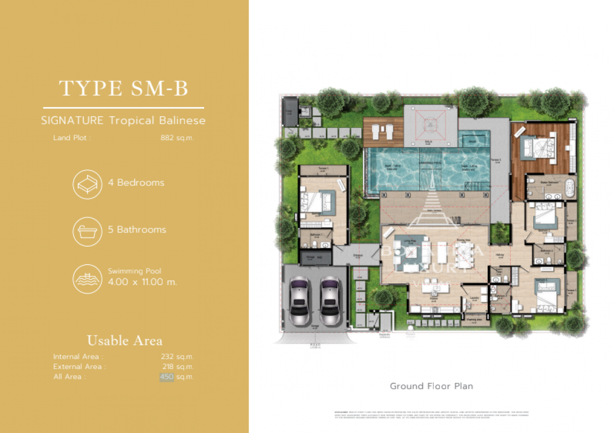 Botanica Four Seasons Type SM-B (Summer)Nestled in the tranquil Thalang area, surrounded by pristine nature and lush greenery, is the exquisite Botanica Four Seasons Spring Zen community. Positioned just a short drive from the stunning Nai Thon, Nai Yang, and Layan beaches, as well as Thanyapura, UWCT, and Phuket International Airport, this location offers convenience and natural beauty.Comprising 30 luxurious pool villas that exude Zen-inspired sophistication, each villa has been meticulously designed with a single-story layout to prioritize comfort and privacy. The unique L-shaped design encloses a spacious private swimming pool embraced by a large terrace, sun deck, and vibrant gardens.Step inside these villas to find interiors flooded with natural light that create a warm and inviting atmosphere in the open-plan living and dining areas. A modern kitchen featuring an islandbreakfast bar awaits your culinary creations. Three cozy bedrooms provide peaceful retreats, each complemented by its own ensuite bathroom.The thoughtful L-shaped layout ensures seamless access from most areas of the villa to the outdoor spaces, inviting you to relax on the poolside terraces, immerse yourself in the lush gardens, or enjoy a refreshing swim in the tranquil pool. Experience peaceful luxury living at Botanica Four Seasons Spring Zena harmonious blend of elegance and tranquility.