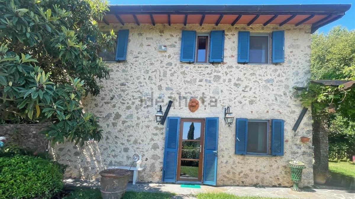 This exclusive sea-view villa is set in the lush hills of Pietrasanta, offering privacy and tranquility just minutes away from the renowned Forte dei Marmi, one of Tuscany's most elegant coastal destinations. Recently renovated in a tasteful English style, the property combines warmth, refined elegance, and the use of high-quality materials. The villa is arranged over two levels, totaling about 300 sqm: the ground floor features a bright and spacious living room with a fireplace, a welcoming dining room, and a library that adds charm and character to the interiors. The sleeping area comprises four large bedrooms and three bathrooms, including a master bedroom with a private terrace. An additional study offers versatile use. Modern amenities include home automation, autonomous heating, double-glazed windows, aluminum shutters, solar panels, intercom system, and efficient insulation to ensure comfort, energy savings, and security. The villa is offered partially furnished, with carefully selected pieces that enhance each space.