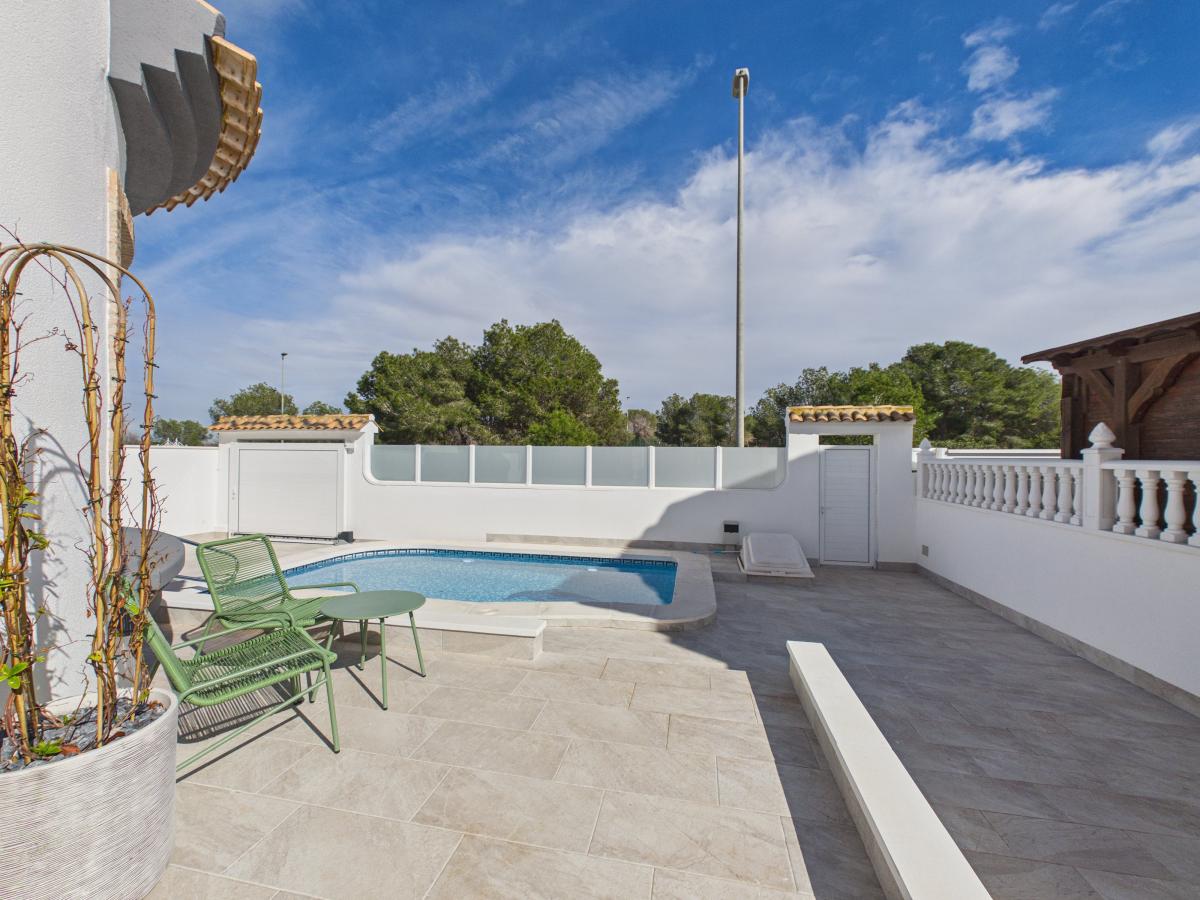 immaculately presented and fully refurbished detached villa offering 3 bedrooms and 2 bathrooms, a private swimming pool, and walking distance to all amenities, including two supermarkets, in the highly sought-after village of Pinar de Campoverde.