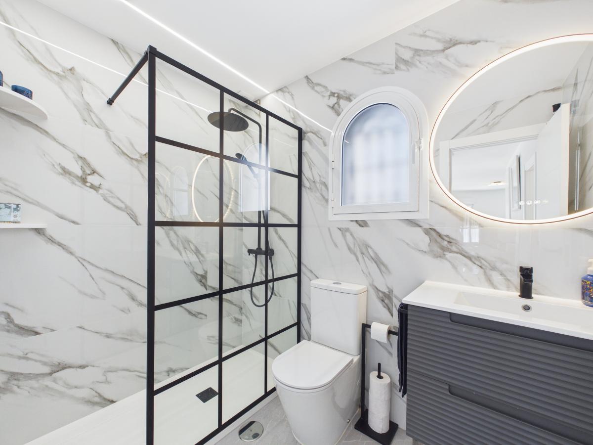 An internal staircase leads to the first floor, where youll find a spacious walk-in dressing room, thoughtfully designed by the current owners. This level also features the second modern bathroom, again with a walk-in shower, and the master bedroom, which benefits from air conditioning and direct access to a private rooftop terrace with lovely open views across the surrounding countryside.