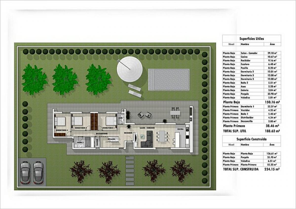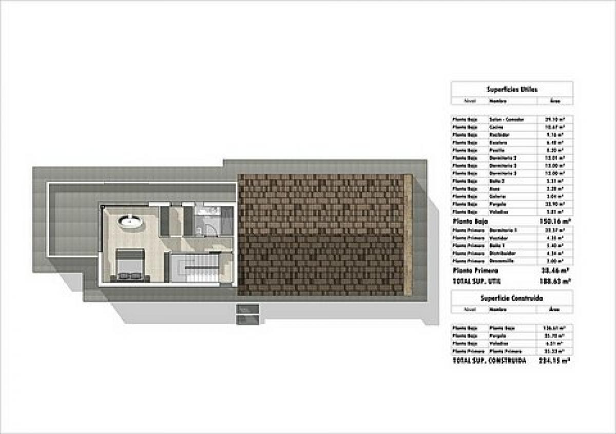 Luxury, Modern style country properties located in Pinoso, Alicante region. New build design on a substantial 10.959 m2 Plot.4 models available in a 2 level design: this model offers an impressive 29m2 living/dining area, 10.m2 fitted kitchen, separate utility. 4 double bedrooms, dressing room, 2 bathrooms (one en suite) and separate w.c.. Exterior with terraces and private swimming pool.