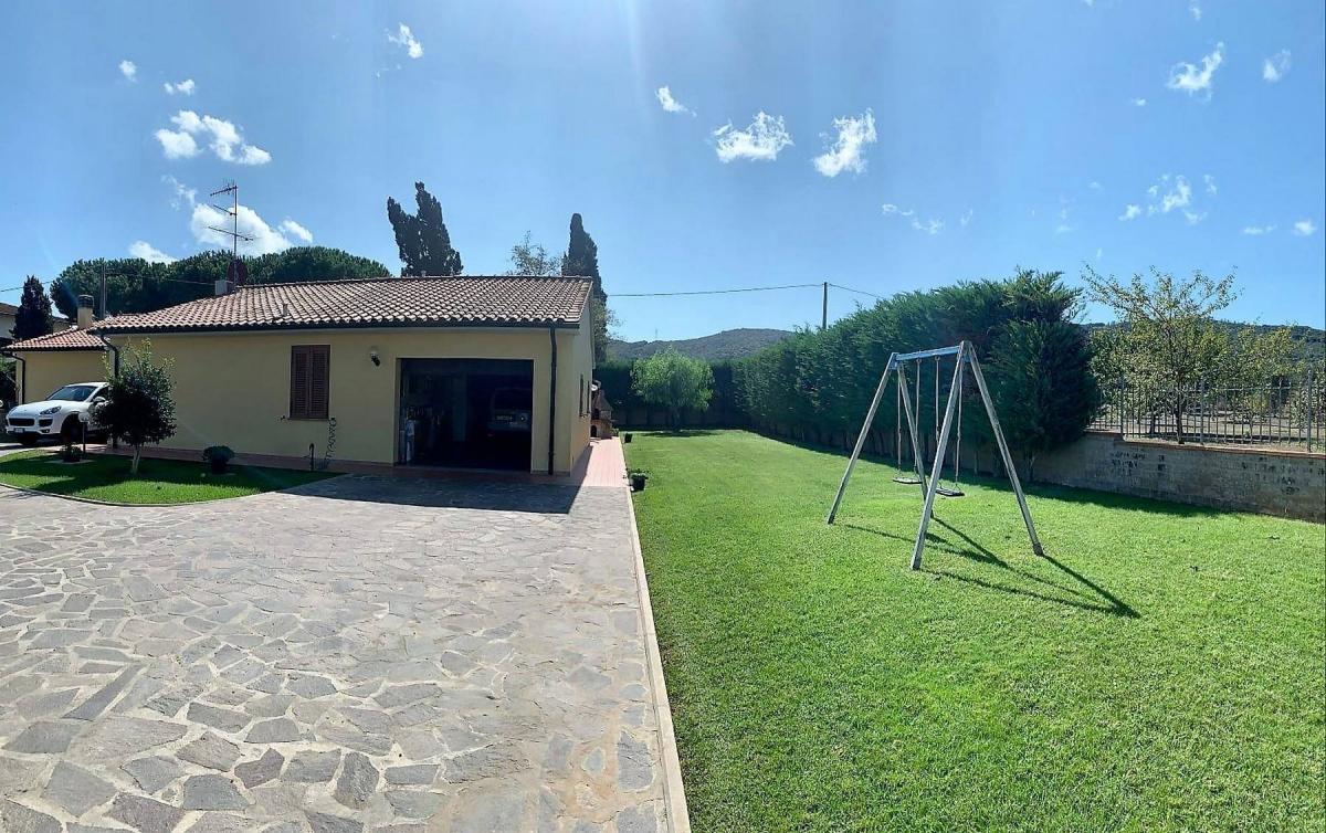 Located in a tranquil area of Piombino, this recently built villa (180 sqm) is a perfect example of elegance and comfort, constructed with high-quality materials and finishes. The property, set on one level, is surrounded by approximately 900 sqm of enclosed garden, with access via an automated gate.