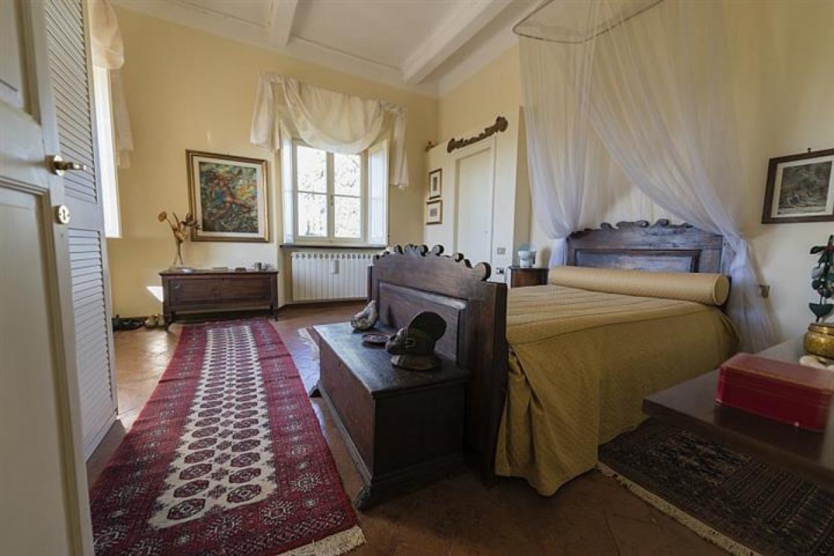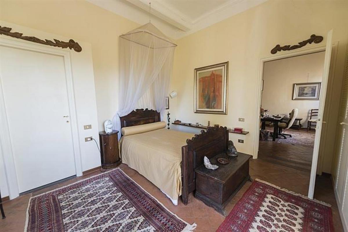 This prestigious Tuscan villa is located in the heart of a small village on one of the Pisani hills, in a strategic position. The villa spans three floors, totaling 1,520 m2, and is decorated with frescoes dating back to the second half of the 1700s and the early 1800s. On the ground floor, there are a large frescoed living room, a waiting room, a consecrated chapel, a living room with frescoes, a kitchen with a large fireplace and oven, a storage area, laundry room, ironing room, custodian's quarters, dining room, and study. An ornate staircase leads to the first floor, which includes a large study area, a bedroom with private bathroom, a living room with frescoes depicting a Roman war, and another study with a fireplace and access to a 90 m2 terrace. The third floor is dedicated to guest accommodation and includes several rooms with bathrooms, and an entrance with stairs leading to the panoramic 120 m2 terrace offering a 360-degree view of the Pisani hills. The villa is sold furnished (excluding personal furniture and paintings).