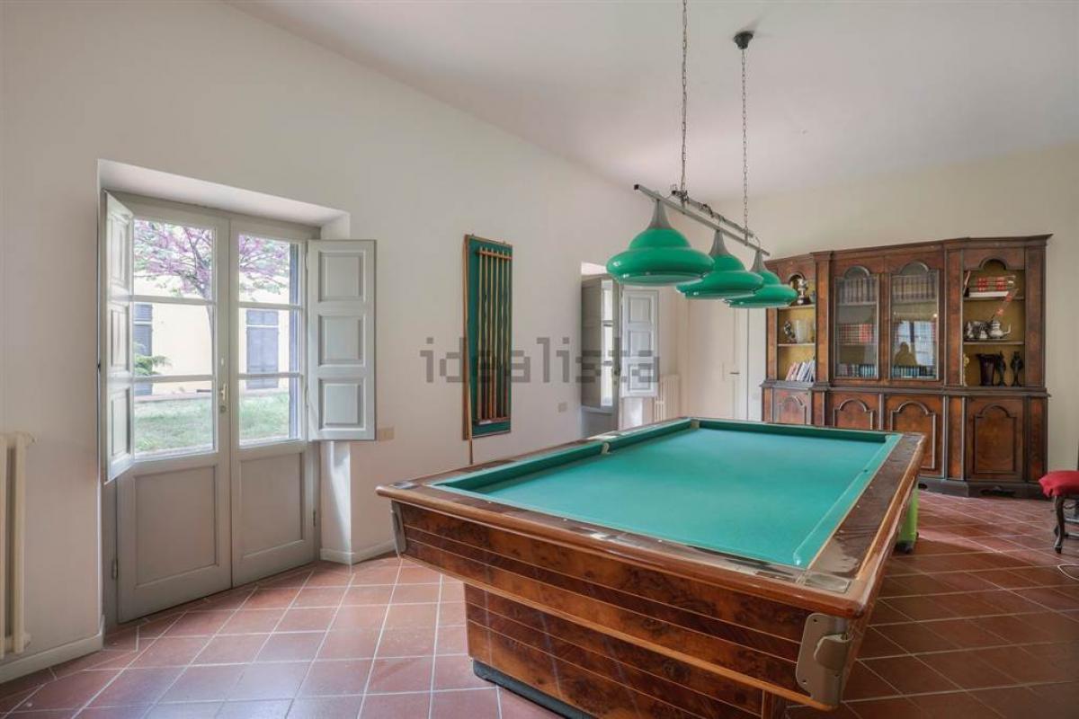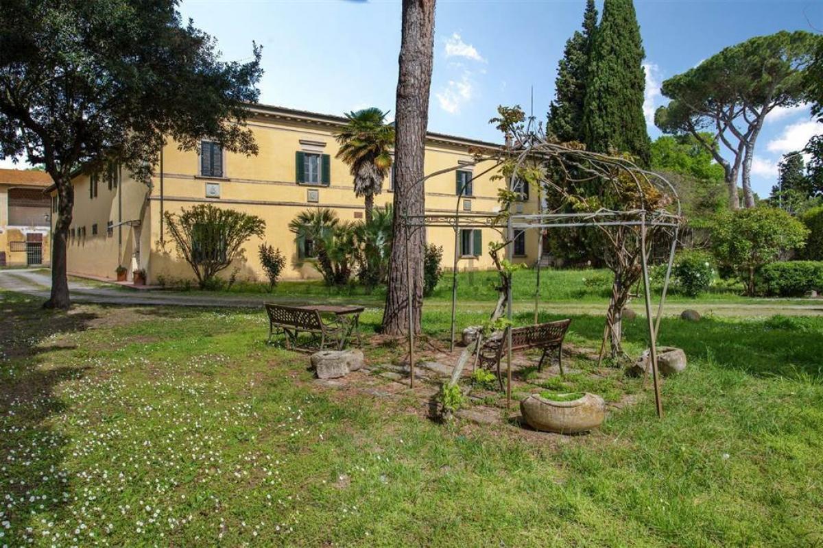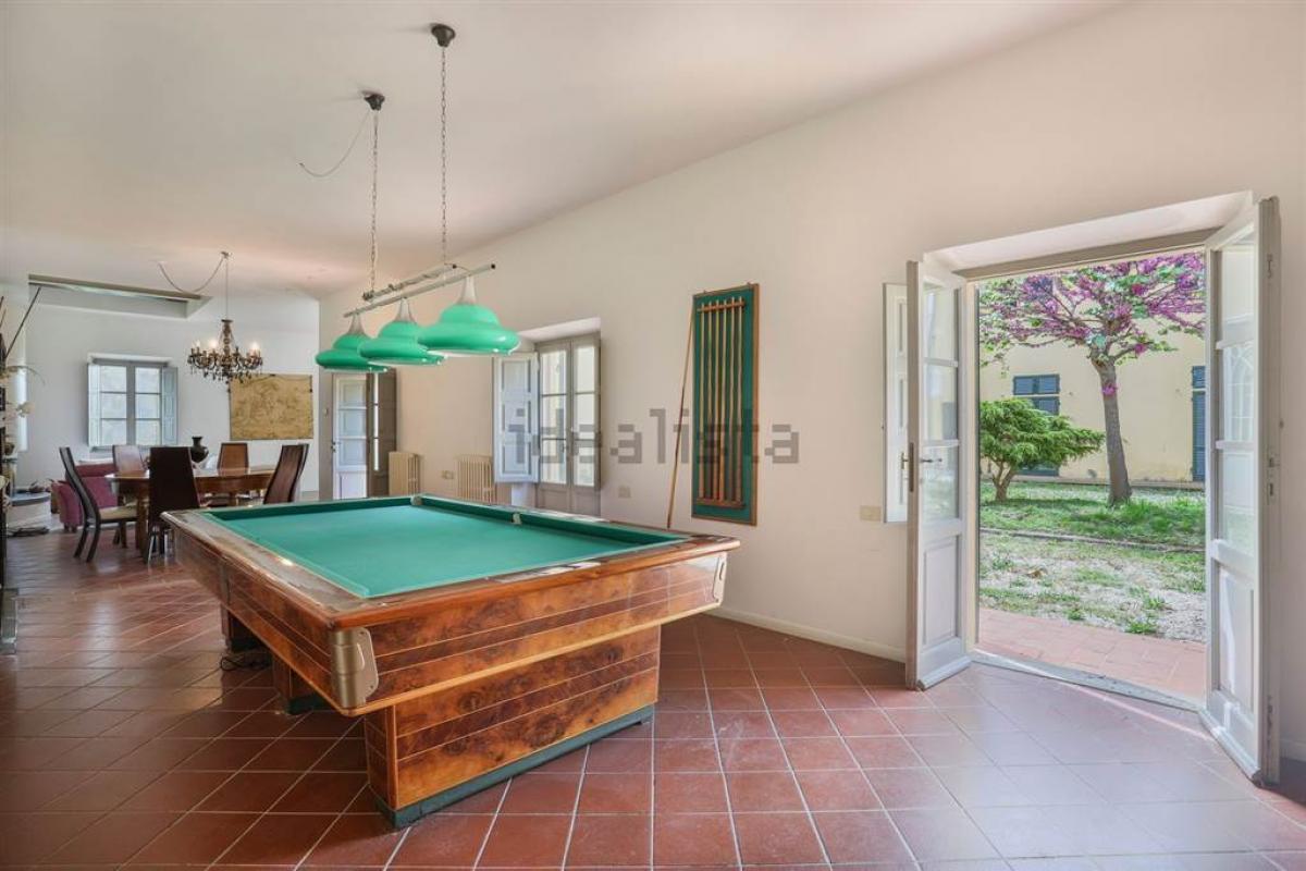 This exclusive villa, located on the edge of the San Rossore Natural Park in one of Pisa's most elegant and peaceful residential areas, is characterized by its distinctive horseshoe-shaped main building that surrounds a charming internal courtyard garden. The property spans two floors for approximately 850 sqm and is already divided into two residential units. The ground floor hosts the living areas featuring spacious lounges with a fireplace, a billiard room, and a large kitchen—perfect for gatherings and family living. The upper floor includes bedrooms, bathrooms, and additional relaxation spaces. The horseshoe layout, with numerous French windows opening onto the courtyard, ensures abundant natural light and seamless continuity between indoor and outdoor areas, enhancing the villa's livability throughout the year.