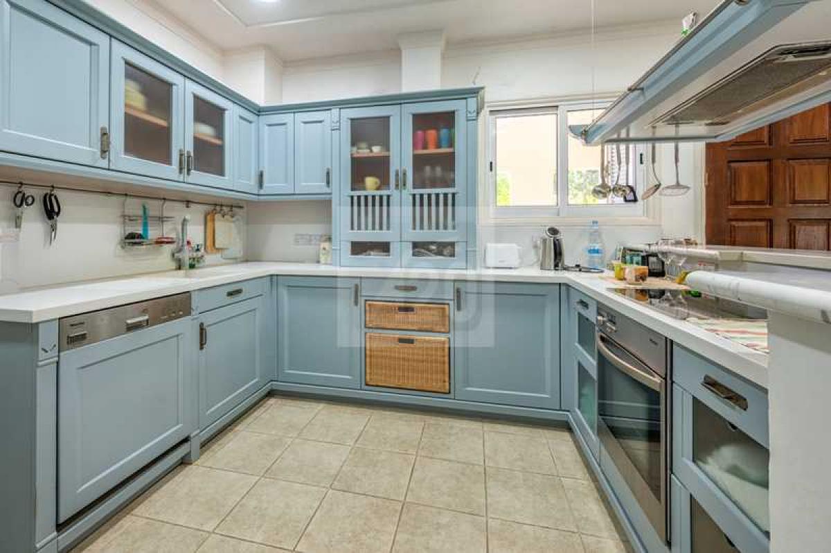 The fully-equipped Italian style is to the left of the hallway. This is a high quality kitchen with marble breakfast bar and fitted Miele appliances including oven, hob and dishwasher, copious amounts of cupboard and worktop space. There is separate utility room with washer, dryer and WC. The dinning area is the connected to the kitchen and contains large dining chair and can accommodate 6 guests, sideboard and display cabinet also their are doors leading out to the covered veranda.
