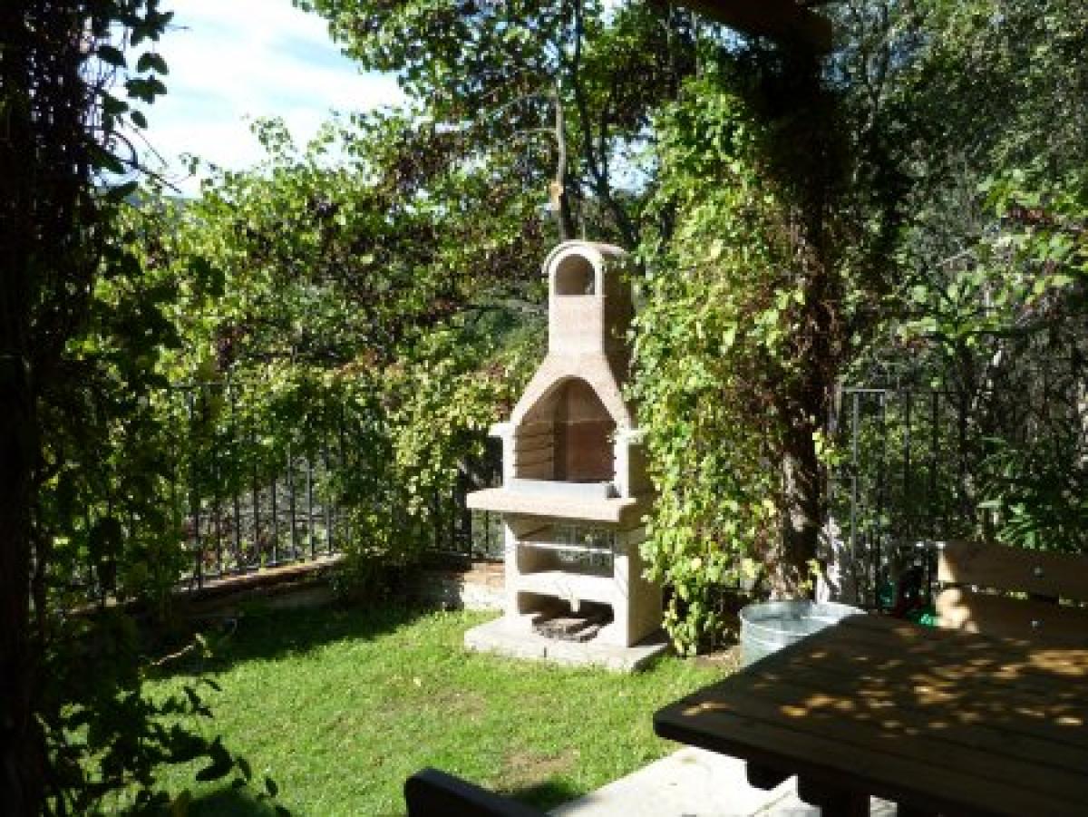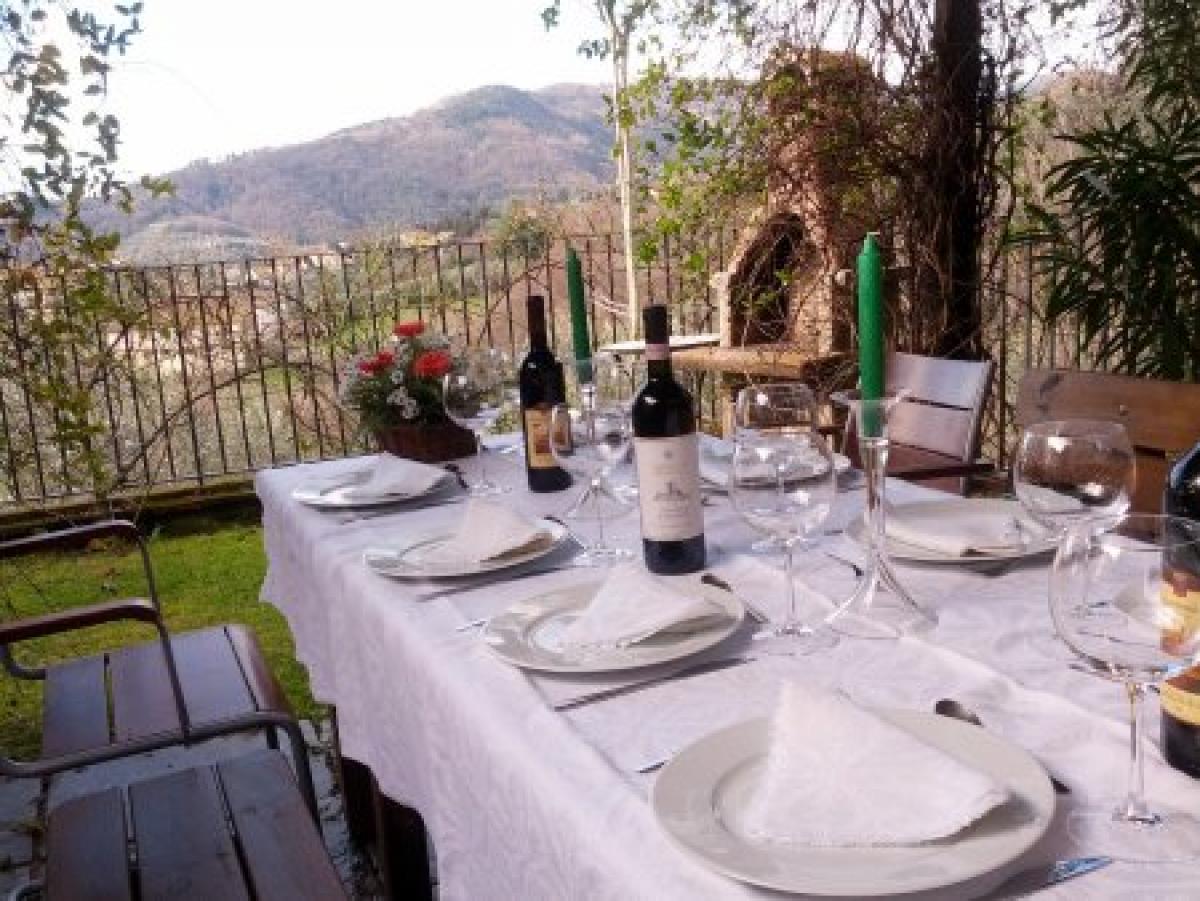 1st floor : a big sunny entrance opens into a large fully equipped kitchen, living room with a large fireplace and wood burner, one double bedroom and bathroom. Balcony with lovely view over the olive groves and Lucca surroundings, a big grass covered terrace with pergola, table and benches, garden chairs, barbecue and aromatic plants surrounded by fruit and olive trees.