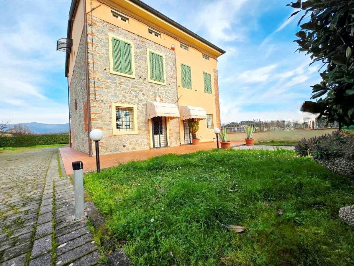 This detached villa, located in the outskirts of Porcari, was renovated in 2012 and spans two above-ground floors with an additional habitable attic. On the ground floor, the entrance leads to a living room, a fully equipped kitchen, two bedrooms, and two bathrooms with windows. From the living room, a stone staircase leads to the first floor, which includes four bedrooms and two bathrooms with windows. The attic, with a maximum height of 2.83 meters and a minimum height of 1.07 meters, offers additional potential for use.