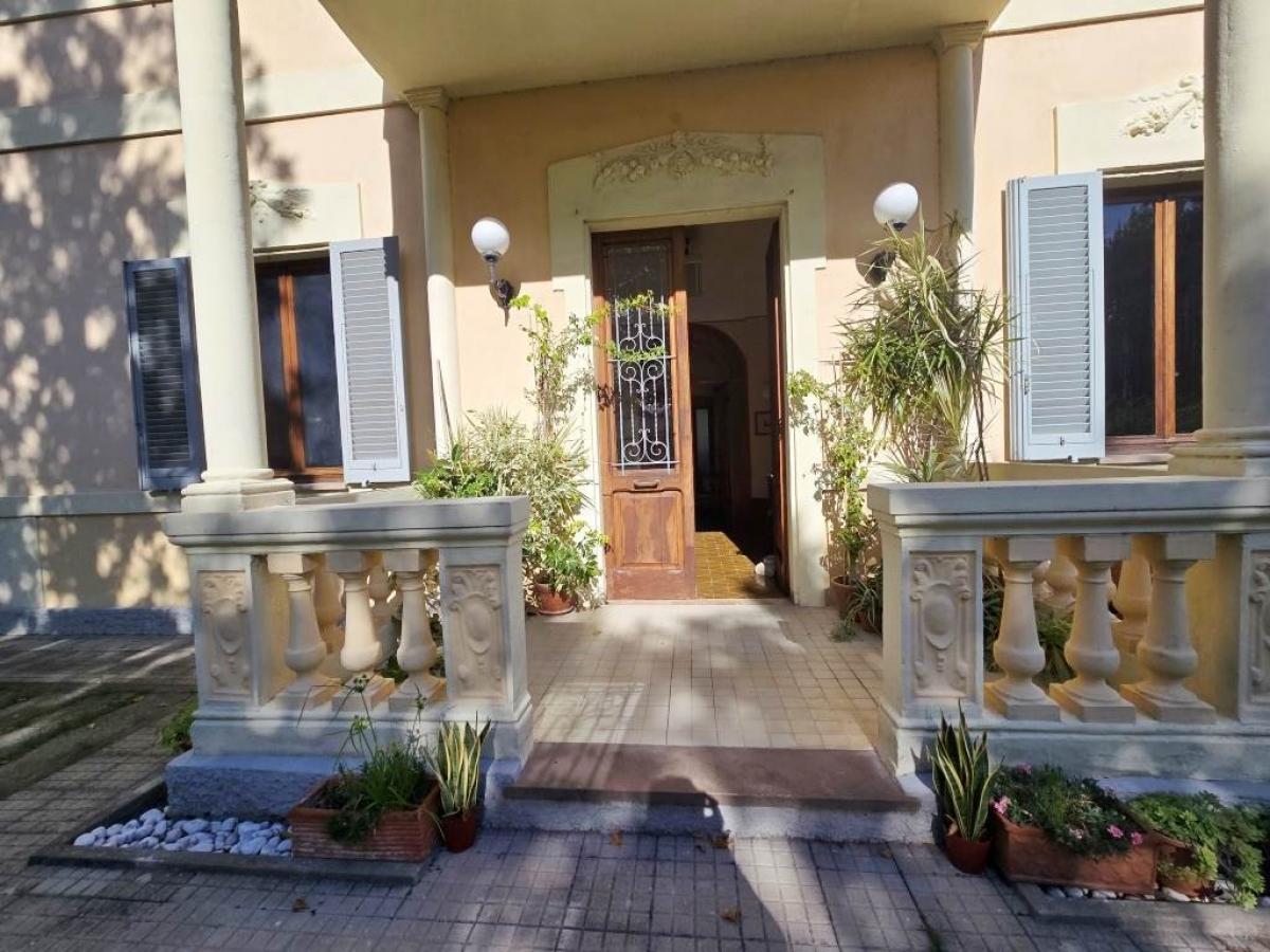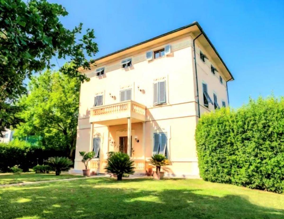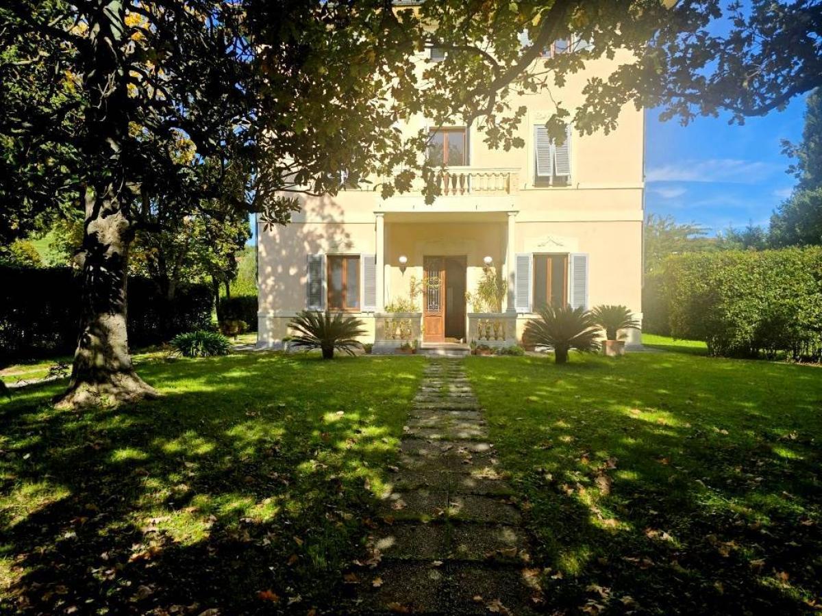 Located in Porcari, in the Lucca plain and only minutes from the city, this elegant 1929 Liberty-style villa preserves charming original details such as Tessieri floors and decorated ceilings. The property, measuring about 390 sqm, is arranged over three above-ground floors plus a basement with 2.55 m height used as a cellar, and is divided into two residential units. The first unit occupies the ground and first floor, featuring a large entrance hall, living room, eat-in kitchen, study, small lounge with fireplace, bathroom, and on the upper level four spacious bedrooms, a study and a second bathroom. The attic unit, renovated in the 1990s and characterized by exposed beams, includes a large living area with fireplace and open kitchen, two bedrooms, bathroom and laundry room. Some rooms require renovation work, while the systems include autonomous methane heating and cast-iron radiators.
