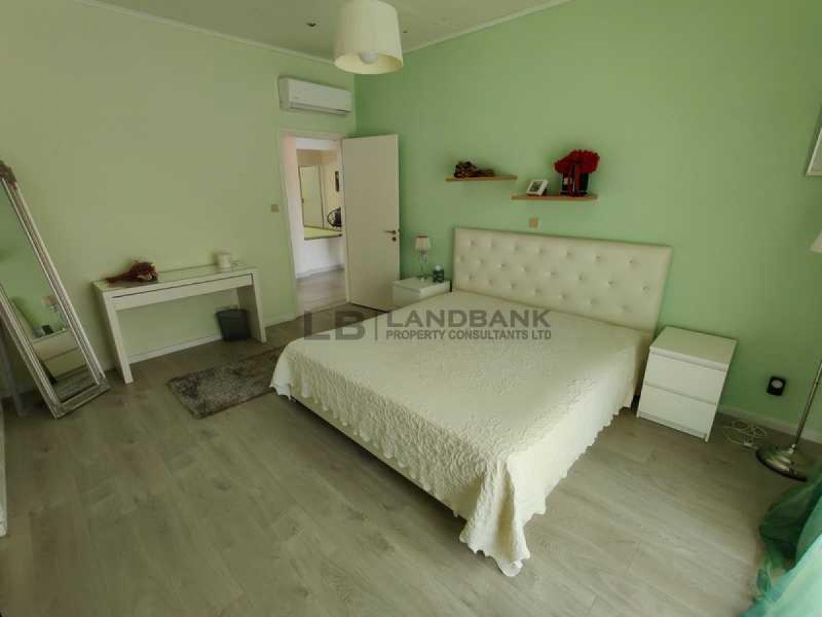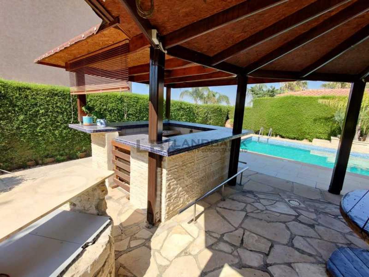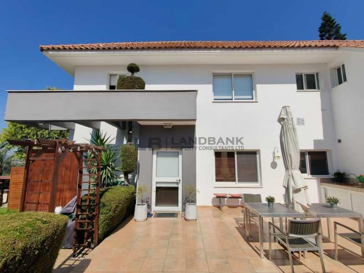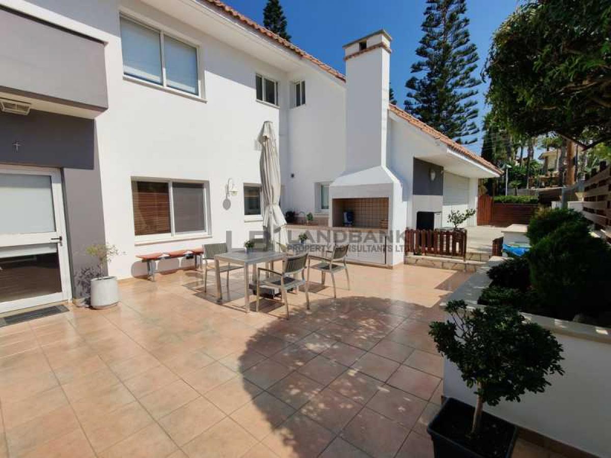 The house consists of two floors. On the ground floor there is a spacious living room area, three sitting areas, bar, open plan kitchen, dining room, fireplace, laundry room with extra storage and guest wc. On the first floor, there is the master bedroom (en-suite bathroom and walk in wardrobe), three double rooms, playroom (or maids room), 2 verandas, upstairs spacious hall, main family bathroom and WC. Outside, there is a garden, covered garage, private swimming pool, BBQ area, covered bar, WC and three verandas.