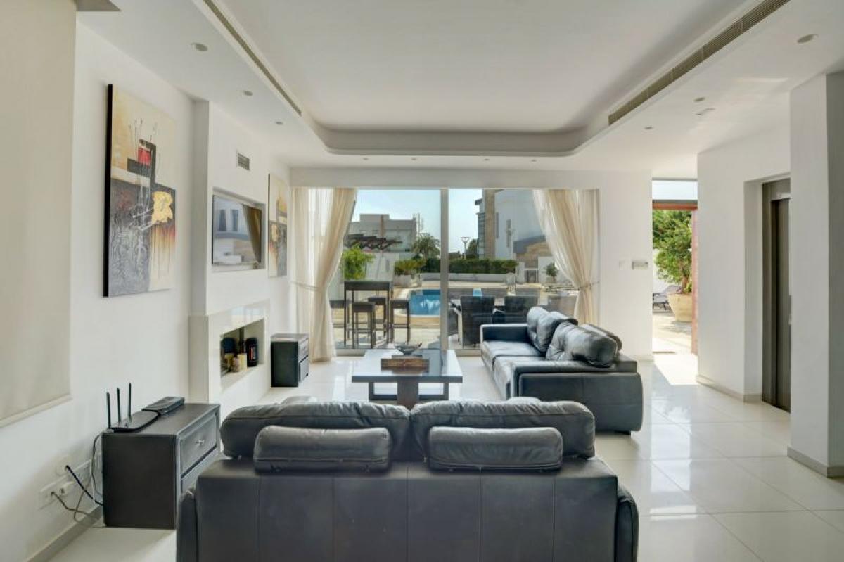Five Bedroom Luxury Villa with Basement Apartment and Roof Terrace with Excellent Sea Views For Sale in Protaras with Title Deeds AvailableThis amazing property has been designed to combine outdoor living whilst taking in the stunning views over the sparkling Mediterranean Sea. As you enter the villa through the front door, you are met with a spacious open plan lounge, dining area and modern, fully fitted kitchen with access to the rear part of the villa. Also from ground floor you will find a double bedroom and guest WC with shower. From the ground floor via an internal lift and staircase you have access to the basement accommodation which includes en-suite double bedroom, spacious lounge, fitted kitchenette and double garage with electric gates. From the lounge area there are sliding double glazed doors leading out onto the front covered veranda and swimming pool. Upstairs there is three double bedrooms, all with fitted wardrobes and en -suite facilities whilst the master bedroom has a private balcony with stunning views. The villa also boasts a private roof terrace from where you can really make the most of the spectacular sea views and surrendering areas.