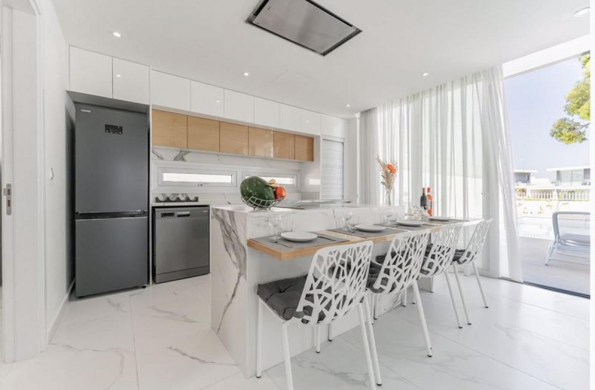 This five bedroom modern villa is only 250m from the beach and close by all the amenities of Protaras which include Restaurants, Bars, Bistros, Shops and entertainment for all the family. The villa comes with en-suite facilities in the bedrooms with fitted wardrobes. Downstairs you will find open plan kitchen, dining and living areas. If you are wanting to rest in the evening this can be done either around the pool area or watch the sunset from the roof garden.