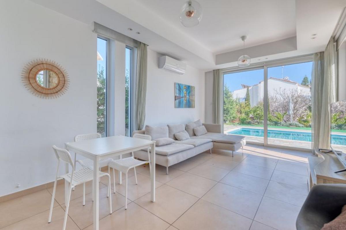 Two Bedroom Detached Villa For Sale in ProtarasA well presented two bedroom detached villa located in the bustling town of Protaras, close to the National Park of Cape Greco and just a few minutes to the nearest beach. Outside there is off-road parking, an 10x4m tiled swimming pool with outdoor shower area, and established gardens finished with astro turf for low maintenance. Inside the living, kitchen and dining area are open plan with sliding doors leading outside to the rear veranda and pool. The kitchen is fully fitted with a plumbed in washing machine and dishwasher and has granite worktops. On the first floor there are two double bedrooms with fitted wardrobes and access to private balcony's and a fully tiled family bathroom with a large walk-in shower.