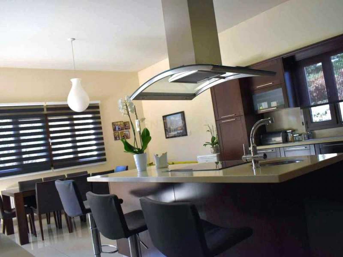 3-bedroom villa situated in Pyrgos area. The ground floor comprises a spacious living dining area, a sitting area, a kitchen with a dining room, a kitchenette, and a guest toilet, providing ample space for family activities and entertaining guests. Three bedrooms, all with en-suite bathrooms, ensuring privacy and convenience for the occupants. The main bedroom also includes a wardrobe, offering ample storage space. An office on the first floor adds versatility to the property, providing space for remote work or study. The total internal covered area is 303 sqm, with an additional 15 sqm of covered verandas, providing plenty of living space both indoors and outdoors. The villa sits on a sizable field of 1575 sqm, which not only offers privacy but also presents opportunities for expansion or development. It is mentioned that the land can accommodate the construction of two more houses or another large villa, adding potential value to the property.Reference number: 931933