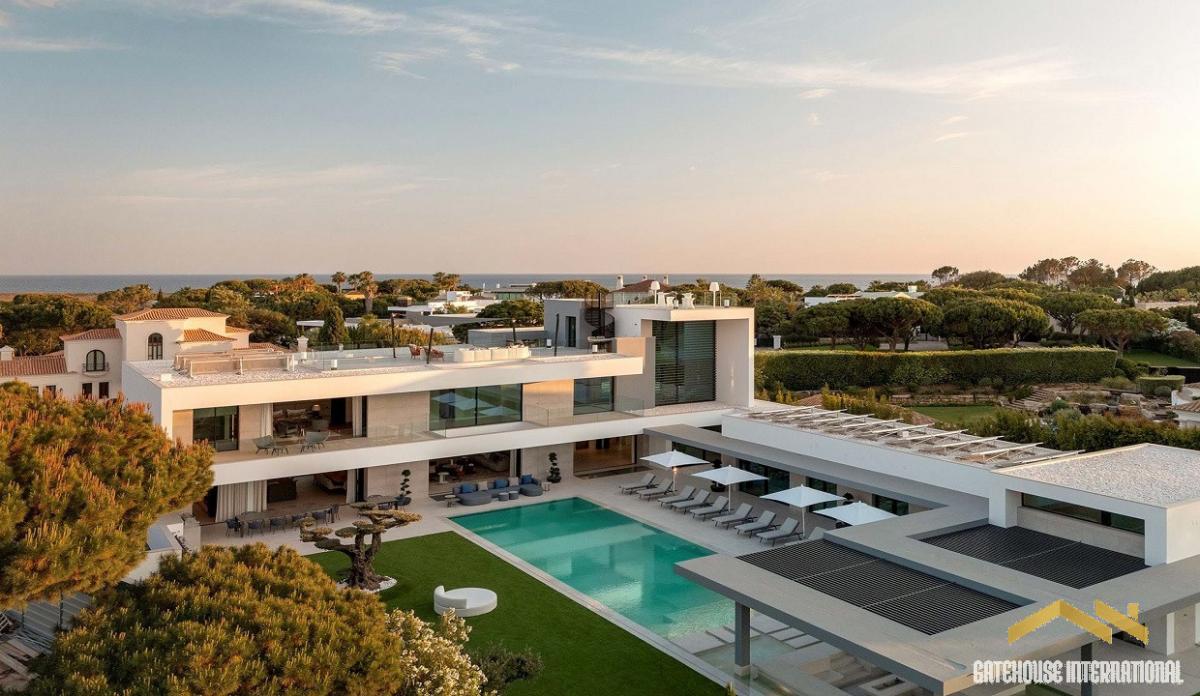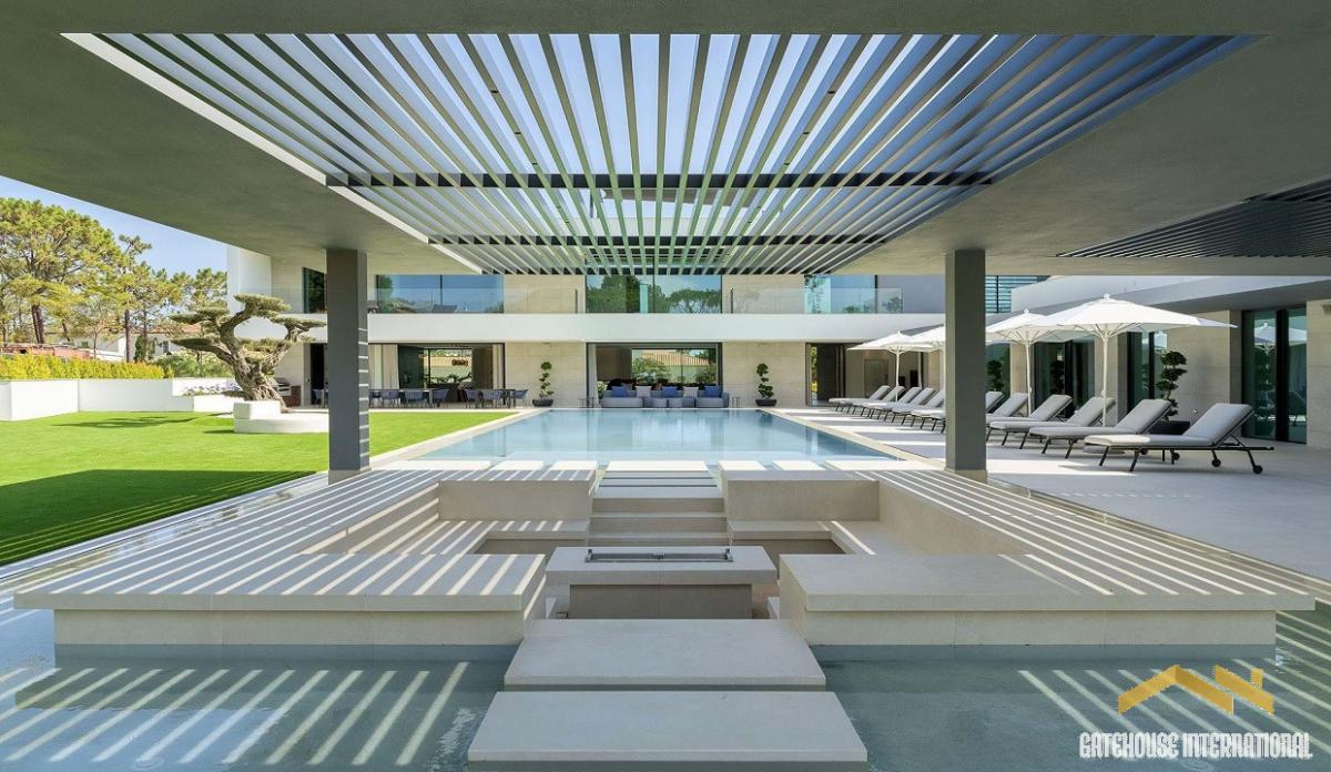 8 Bedroom Algarve Luxury Villa in Quinta do Lago Golf Resort - situated close to the beach, this large 1,421m2 villa within a plot of 2,815m2 has 4 floor levels, including a main 6 bed villa plus a 2 bed self contained guest apartment as well as a cinema room and spa and sport facilities. The ground floor features a double-height entrance with lots of natural light dividing the villa into the living area and the sleeping areas. The large open-plan design features a stylish gas fireplace separating the living room, dining room, and state-of-the-art kitchen, equipped with three ovens and two Bora hobs with a convenient butler's kitchen. This area opens directly onto the outdoor covered terrace and cooking station. The left wing of the property includes a study with an en-suite, the main guest suite and three spacious en-suite bedrooms, each one featuring a walk-in closet and direct access to the pool area. On the first floor, there are two additional bedrooms. One of them is the main bedroom, offering his and hers walk-in closets and bathrooms. it also boasts a private terrace with a cosy seating area overlooking the pool. The second floor features a generous terrace with a lounge area and splendid sea views. The lower level comprises a living area with a bar, a snooker table, and a generously sized wine cellar. There is also a laundry room, two guest bathrooms, a cinema room, a sauna, a steam bath, a massage room, and a yoga studio. This floor also accommodates a full guest apartment with two-bedroom suites, an open-plan living area, and a fully equipped kitchen. The garage provides 2 or 3 parking spaces, both with electric charging stations. Outside, a spacious lounge area by the pool offers the perfect spot for relaxation and soaking up the sun. The stylish fire pit creates a cosy atmosphere for evening gatherings, while the outdoor kitchen makes alfresco dining and entertaining a true delight to the renowned Algarvean lifestyle.Features