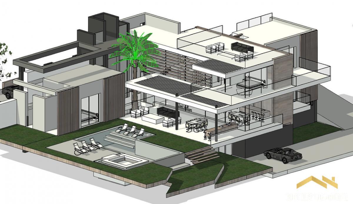 Brand New Modern Style Villa in Quinta do Lago Golf Resort - this is a 5 bedroom luxury villa measuring 669m2 nearing completion located in Encosta do Lago adjacent to the Quinta do Lago Lake and walking distance to the beach and Campus. Situated on an elevated plot, the villa is crafted with top-tier materials and finishes over three levels, including a roof terrace. its open-plan layout is enhanced by floor-to-ceiling minimalistic windows, creating a seamless connection between indoor and outdoor living spaces. The interior features Marazzi tiles, Villeroy & Boch bathroom fittings with GESSi taps, and an italian designer kitchen equipped with Miele appliances. Comfort is paramount, with underfloor heating and integrated air conditioning throughout, including the basement, as well as a state-of-the-art ventilation system for natural air circulation. The basement level is designed for both leisure and practicality. it offers a fifth en-suite bedroom, a games/TV room, and a gym with a sauna, all with direct access to the exterior. The expansive living areas on the ground and first floors open onto multiple terraces, creating a perfect blend of luxury and tranquillity. The villa's outdoor spaces are just as impressive. A stunning infinity pool features a shallow sunbed area, while a sunken lounge with a fire pit provides an elegant spot for relaxation. The rooftop terrace is a true highlight, complete with a hot tub, bar, and lounge area, offering spectacular panoramic views. The outdoor BBQ, dining, and lounge areas are ideal for entertaining, while secure indoor parking for two cars and external parking for three add convenience and functionality. Designed with precision and built to the highest standards, this villa is a rare opportunity to own a truly remarkable home in one of the Algarve's most sought-after locations.Features