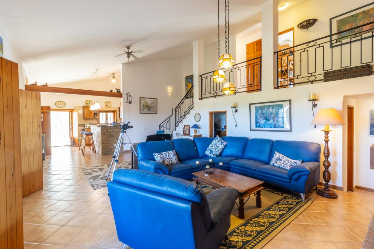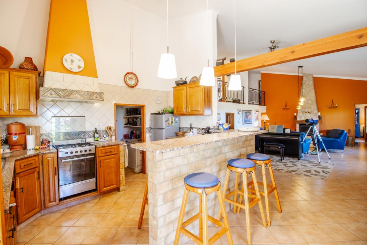 Nestled on a lush countryside hill, this exquisite villa offers a serene escape from the bustling city life. This villa boasts a perfect blend of modern comfort and rustic charm.At the entrance of the house, we have access to a large porch that leads to the open-plan living area which is spacious and inviting, featuring large windows that allow natural light to flood in. A cosy fireplace stands as the centre piece of the room, making it perfect for those chilly winter evenings. The decor combines traditional elements with modern comfort, creating an elegant yet comfortable ambiance.