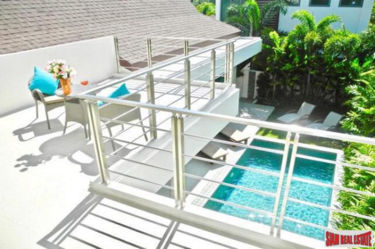 Selling price is 430,000 USD and the price in Thai Baht is for information onlyA two story modern pool villa is for sale in a secure estate of 36 villas, only five minutes from Rawai Pier and 10 minutes to Nai Harn Beach. This 4 bedroom house has a unique rooftop terrace that overlooks the private swimming pool and is a perfect spot to entertain or relax.