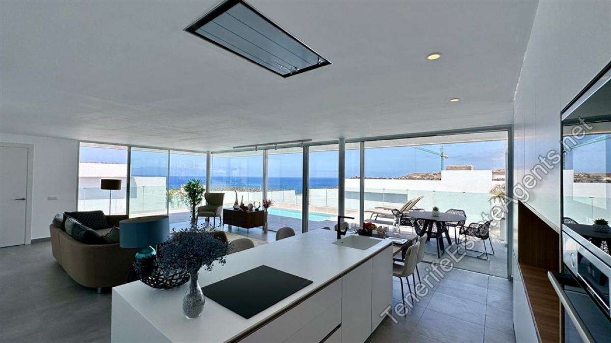 3 Bed, 3 Bath Modern, Luxurious Villa For Sale with Sea views, Rokabella, Sybaris, Costa Adeje 1,590,000€Brand new, Modern, Independent Villa For Sale in the Rokabella development in Callao Salvaje. The villa has 3 bedrooms and 3 bathrooms, distributed over 2 floors in addition to a basement level where there is parking for two vehicles plus a laundry room and additional utility space.