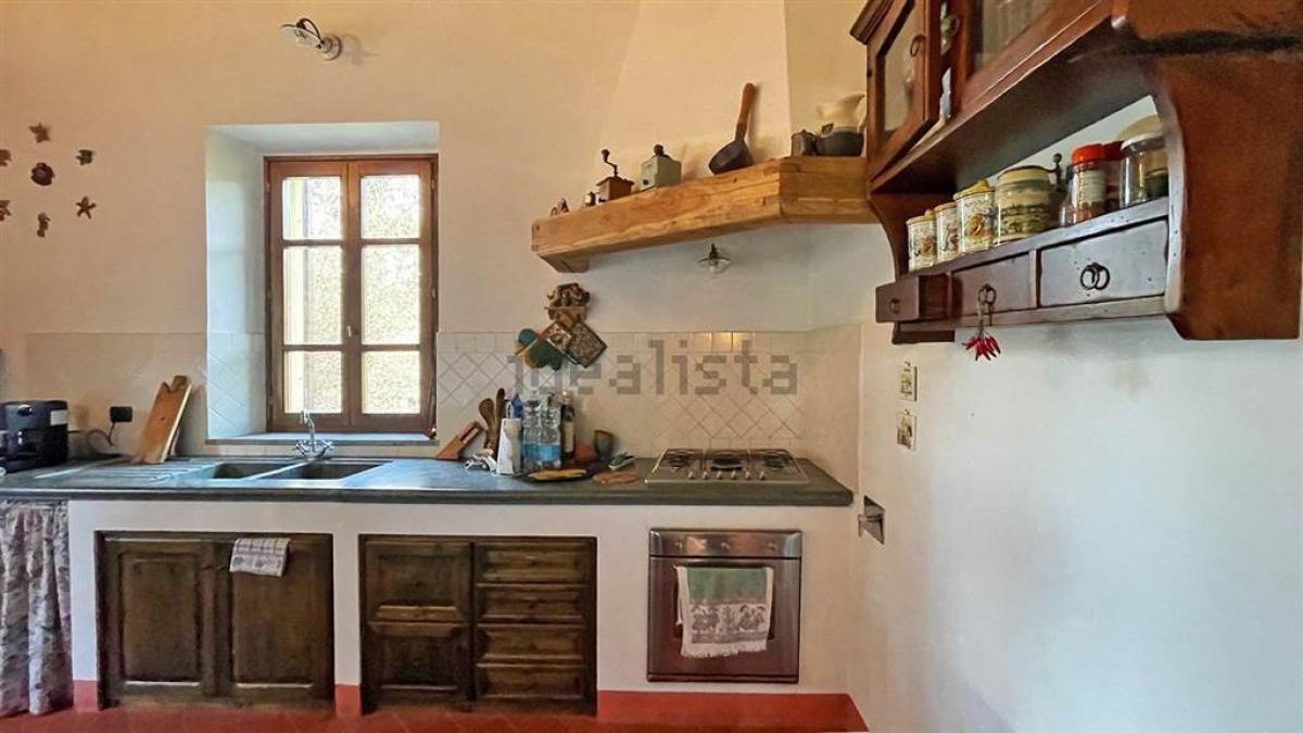 Main residence: spread over two levels. The ground floor hosts a spacious and bright living room with fireplace, a Tuscan-style kitchen, a double living room with large windows, and a service bathroom. On the upper floor, there are two bedrooms and an additional bathroom. Completing the main residence is a charming winter garden, a traditional vaulted cellar with terracotta floors and wood-fired oven, as well as a large underground cellar with a small bathroom.