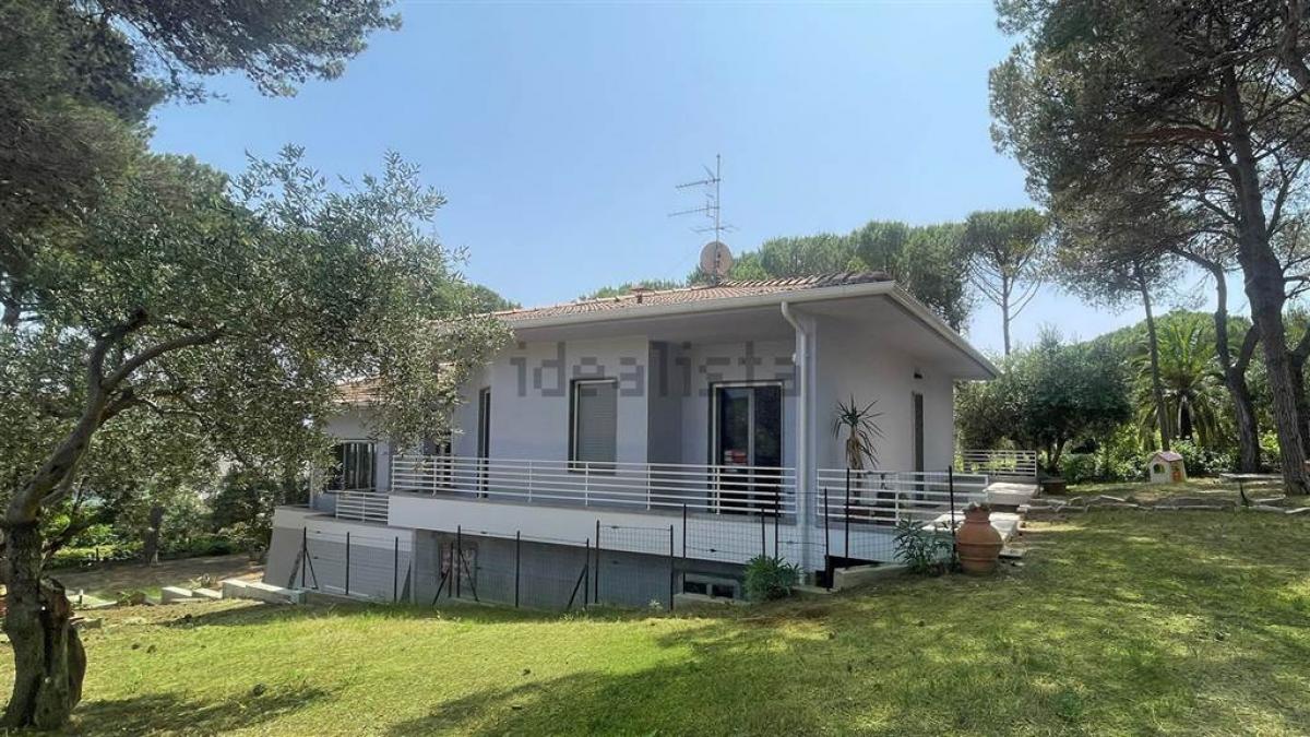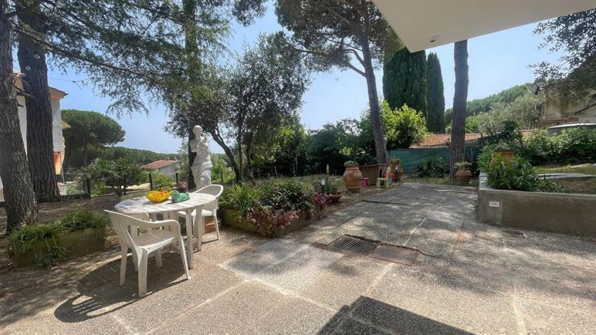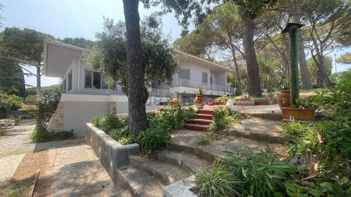 The villa is surrounded by a private garden of about 1,000 sqm, offering a peaceful and secluded setting adorned with fruit trees and maritime pines that provide natural shade and freshness. The outdoor area offers ample space for creating a large swimming pool and redesigning the landscape to include on-site parking spaces. The property has been fully updated, with high-quality windows and doors, modernized systems for safety and comfort, and luxury flooring materials that add a sophisticated atmosphere.