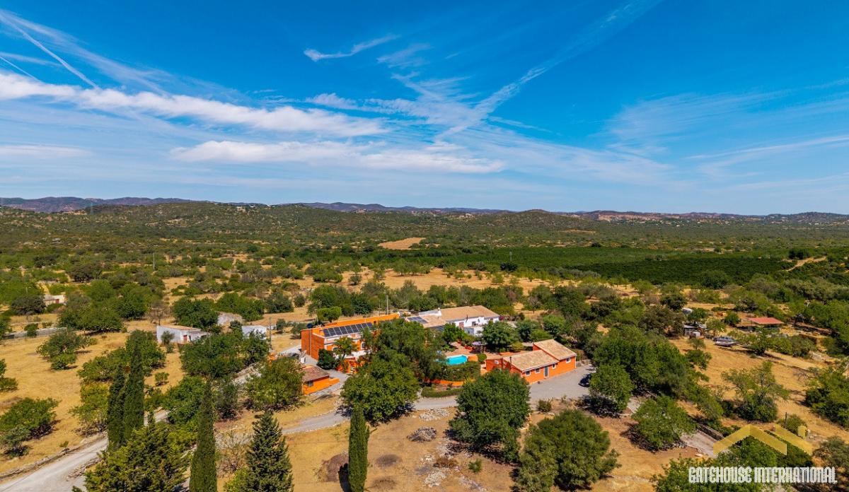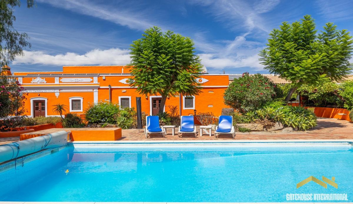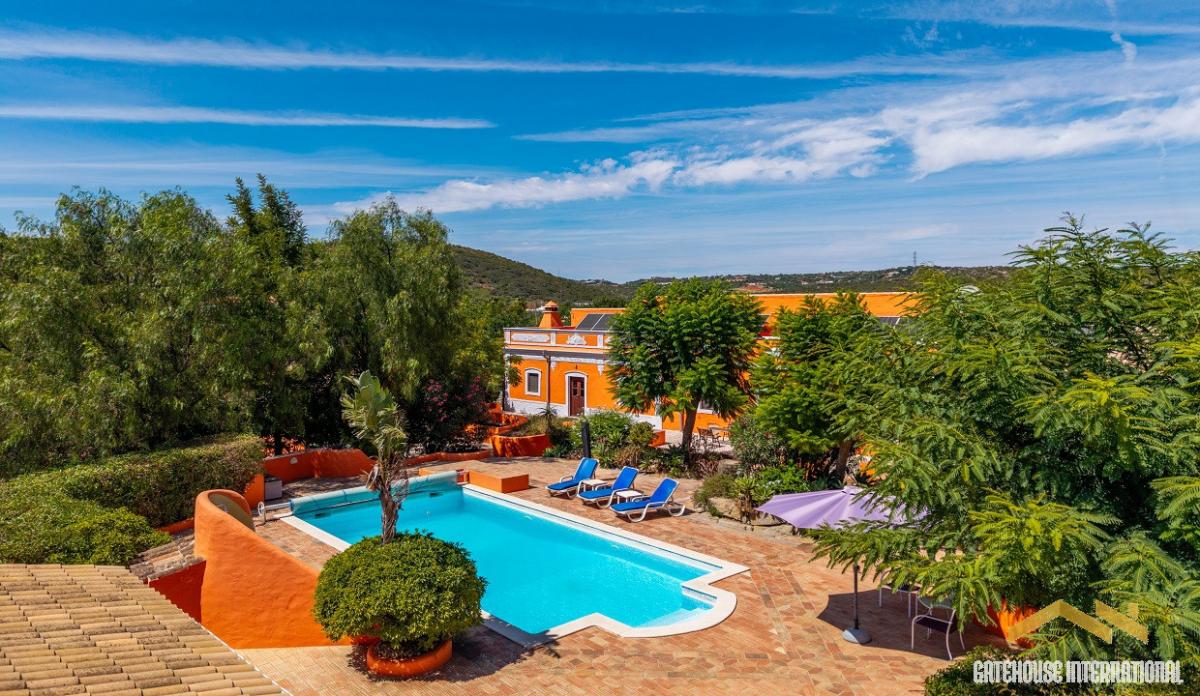 5 Bed Villa Plus 2 Bed Guest Cottage in Sao Bras Algarve - a traditional rustic Portuguese 441m2 property estate with a plot of 4,557m2 with its own borehole with the house with 5 bedrooms plus a separate detached 2 bedroom guest cottage, plus a 9.5m x 4.5m2 heated swimming pool. The farmhouse has charming rustic architecture with modern living, with 5 large bedrooms with 4 bathrooms plus a separate detached 2-bedroom cottage set on either side of a large patio/swimming pool within wonderful mature gardens. The property is located in the countryside, 10 minutes from Sao Bras de Alportel and the local coastline of Fuseta, Olhao and Tavira with their sland beaches. The terrace area is perfect for peaceful relaxation around the pool, with both patio and pool lighting. The property maintains its rustic charm whilst also benefiting from underfloor heating with heat pump, full photovoltaic solar system with batteries, a solar / heat pump hot water system and a heated swimming pool by heat pump. This is also offers a rental return, B&B potential, or wonderful family home with plenty of space for visiting family.Features