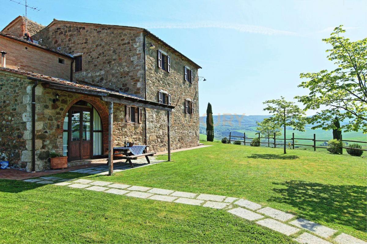 Wonderful agricultural property with swimming pool, garden and 160 ha of land, located in Val d'Orcia, the land of clay hills (the so-called 'Crete'), olive groves, woods, vineyards, parish churches and castles ^It is a stone farmhouse, built in the 16th century, believed to have been owned by the same order of monks that had its own parish in San Piero in Campo, a nearby locality. The recent conversion, carried out preserving the original features, has resulted in 5 spacious flats equipped with modern comforts (satellite antenna). The garden with its furnishings and the splendid swimming pool surrounded by the evocative panorama of the valley: Radicofani, Pienza and the wonderful countryside that rises from San Piero to Monte Amiata is marvellous. The structure is about 550 square metres with 160 hectares of land with woods and various types of arable land. The structure currently has 5 flats, each with its own bedroom and bathroom. There are 5 LPG boilers for heating.^The Val d'Orcia is a wide valley located in Tuscany, in the province of Siena and partly in the province of Grosseto, north and east of Monte Amiata and close to the border with Umbria. Crossed by the river Orcia in the centre, which gives it its name, it is characterised by pleasant scenic views and several centres of medieval origin, two of which are well known, such as Pienza and Montalcino. Characteristic tree is the cypress, typical foods and wines are Pici, Cinta Senese cold cuts, Pecorino di Pienza, Brunello di Montalcino and the new DOC Orcia wine denomination.,