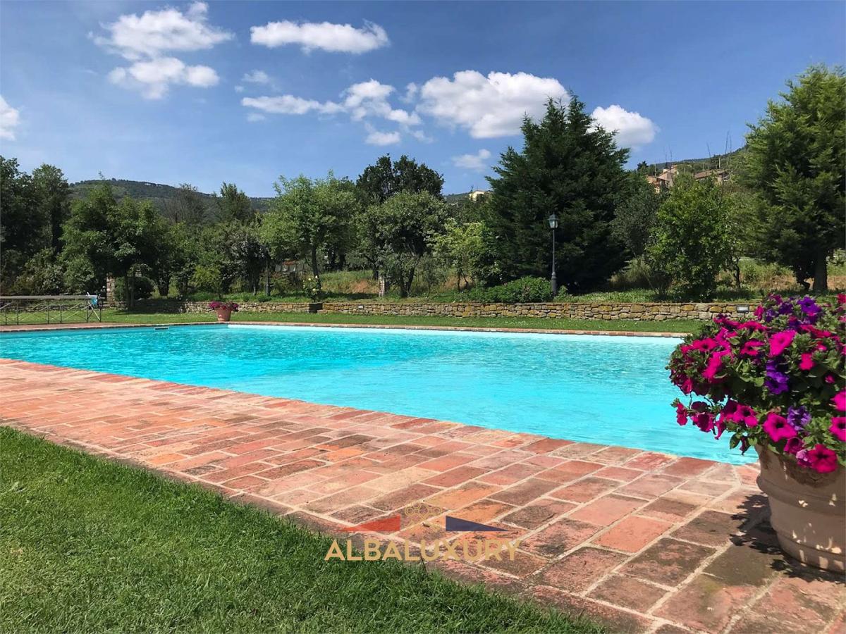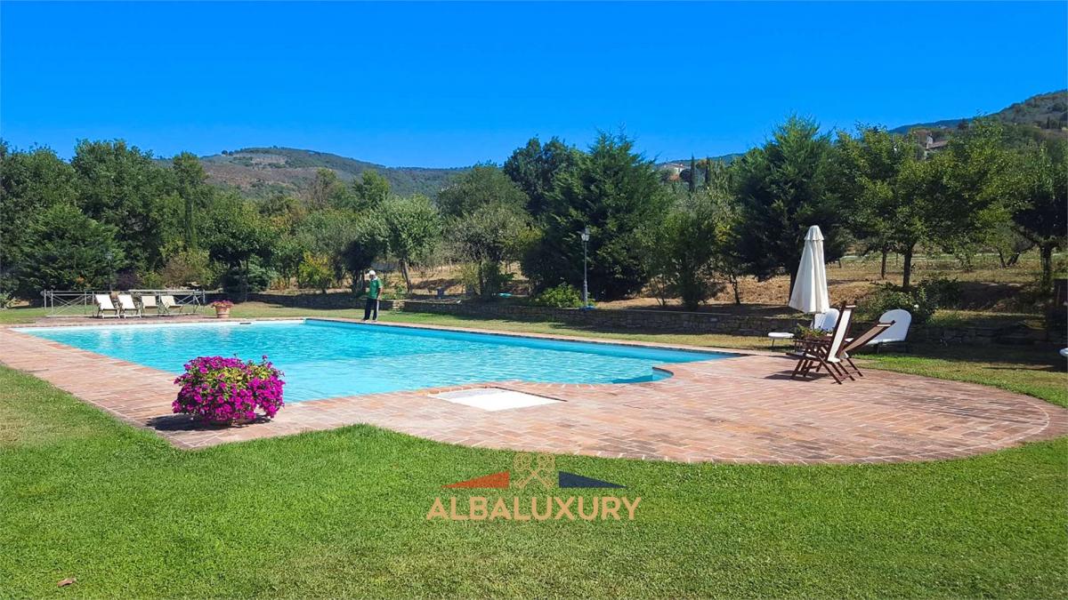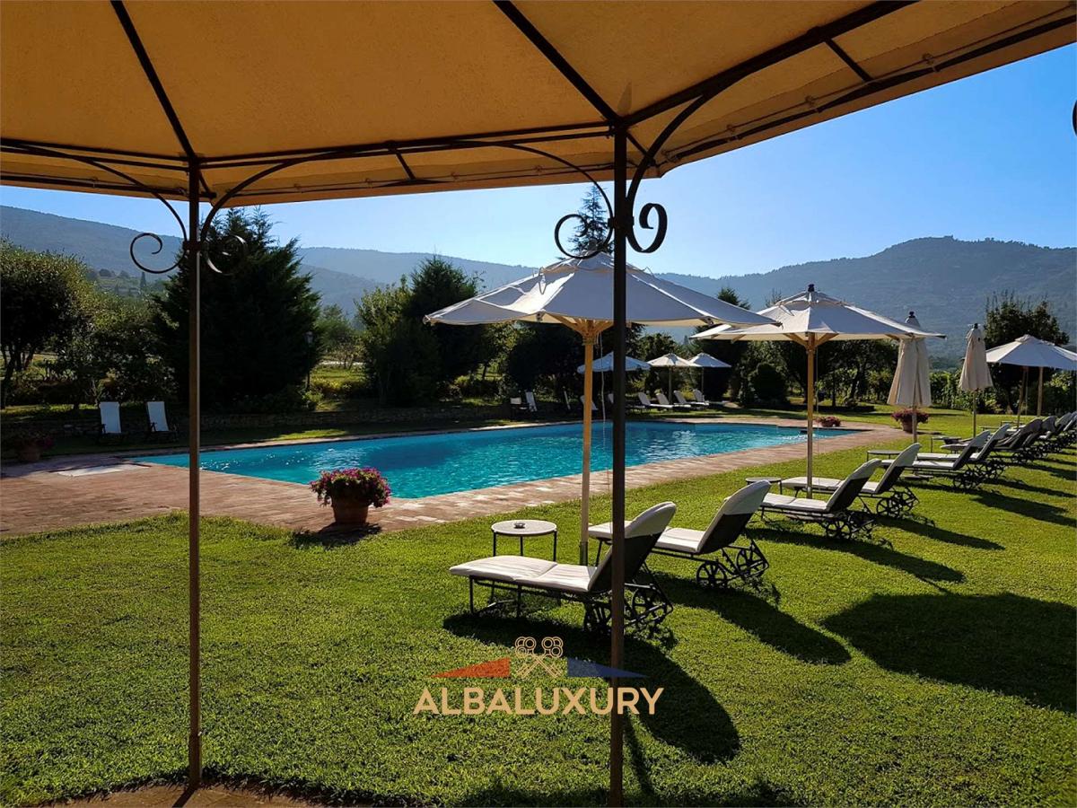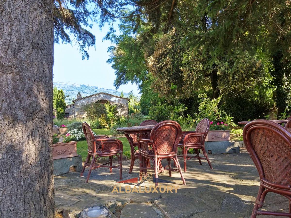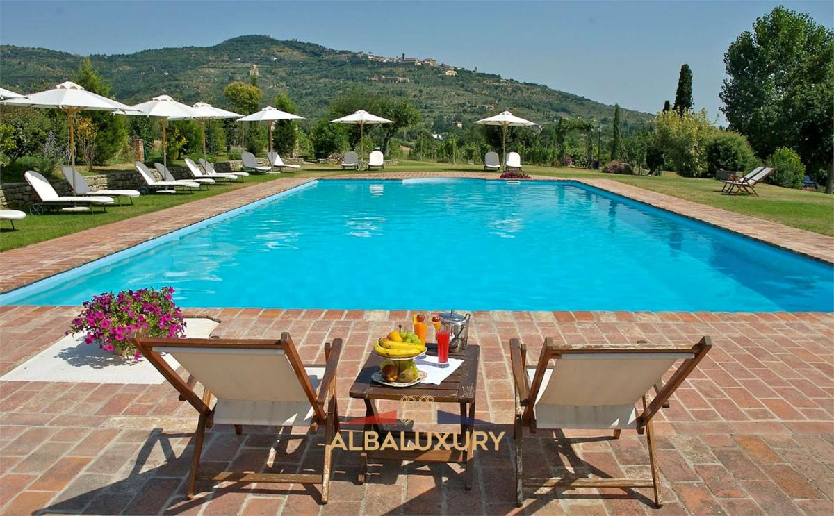 This beautiful villa is located in Cortona, a medieval and Etruscan town in the province of Arezzo, and is a historic residence dating back to 1600.^A careful restoration has preserved all the characteristic and sought-after original architectural elements of the period residence, combining the elegance of the original structure with comfort and functionality^The property enjoys an exceptional setting: the rolling Tuscan hills and the unparalleled panorama of the town of Cortona silhouetted on the horizon as if protecting the Villa.^An elegant swimming pool in which to relax, a flourishing patio surrounded by majestic centuries-old oaks, vineyards and olive groves, a characteristic and functional well outside; elegant and cosy communal areas finely decorated with period prints and paintings, inside.^The refined manor house opens its doors to the communal rooms where, amidst stone fireplaces and original terracotta floors characteristic of the local architecture, guests can relax while reading or chatting over a drink.^The 15 rooms feature precious antique furniture that belonged to the former owners. Other rooms are located in the adjacent annexe, each one different in shape, decor and size, but all elegantly furnished with precious antiques and skilfully coordinated fabrics that give the rooms even more charm and atmosphere.^The rooms are all equipped with satellite television, minibar, safe, network connections and spacious bathrooms with hydromassage bath or hydromassage shower cabin.^They all enjoy the wonderful panorama of the Tuscan countryside.^For leisure time there is a splendid outdoor swimming pool surrounded by greenery and a golf practice area 3 km away consisting of a hole and a pitch putt area.^^Cortona is a historic town in the Valdichiana in the province of Arezzo. The town is enclosed by ancient Etruscan walls built on a hill about 600 metres above sea level. With its elevated position, Cortona enjoys a splendid view of the Valdichiana landscape and Lake Trasimeno (Umbria). The town's landmark is the Palazzo Comunale, characterised by its clock tower and its pietra serena staircase overlooking the Piazza della Repubblica.^Cortona boasts several attractions, the most important of which include Beato Angelico's Annunciation at the Museo Diocesano, the MAEC (Museo dell' Accademia Etrusca) in which the tabula Cortonensis is preserved. There are also many exhibits from various Etruscan areas in the area. Other places to visit are: the Girifalco Fortress built for military purposes and now open to the public, the Sanctuary of Santa Margherita, the town's patron saint. Not to be missed is the Franciscan Hermitage \Le Celle\, the first convent built by St. Francis of Assisi in 1211, where today a small community of friars lives, here you can visit the ,