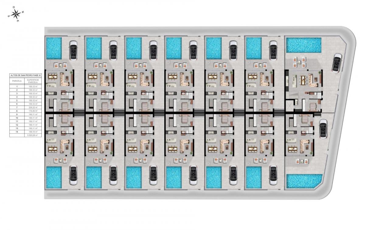 Contemporary Design and Premium Quality LivingDiscover the third phase of this exclusive residential project in San Pedro del Pinatar, where modern architecture meets comfort and functionality. These 14 semi-detached villas are designed with a minimalist style and high quality finishes, offering an elegant and sophisticated living experience on the Costa Calida. Each villa features 3-4 spacious bedrooms, three bathrooms, private swimming pool, terraces and a private garden, creating the perfect environment for privacy, relaxation and Mediterranean outdoor living.San Pedro del Pinatar is one of the most sought after towns in the Mar Menor area, known for its natural salt lakes, calm beaches and year round lovely climate, making it ideal for both permanent living and holiday use.Open Plan Layout Designed for Modern LifeThe villas are carefully distributed with an open-plan kitchen connected to a bright living and dining area. Large windows in the living room with motorized blinds provide direct access to the pool area and allow natural light to flood the interior spaces.Key features of each property include:3 bedrooms with built in wardrobes3 fully equipped bathrooms with vanity units, mirrors and shower screensFurnished kitchen with Balay appliances includedPrivate pool and garden areainterior and exterior LED lightingTerraces on the first-floor and optional rooftop solariumOn plot parking spaceAerothermal system for hot waterPhotovoltaic solar panels for improved energy efficiencyPre installation of ducted air-conditioningThese homes are designed to combine sustainability, comfort and modern style in every detail.Prime Location Near Beaches and ServicesLocated between the Mar Menor and the Mediterranean Sea, San Pedro del Pinatar is a paradise for beach lovers and water sports enthusiasts. The town offers a lively marina, natural mud baths, shops, restaurants, sports facilities and excellent services all year round.Beaches of the Mar Menor 3 kmMediterranean beaches 5 kmDos Mares Shopping Center 5 kmLo Romero Golf 10 kmRoda Golf 15 kmMurcia Corvera Airport 30 kmAlicante Airport 80 kmSan Pedro Marina 4 kmAn ideal Home for Lifestyle and investmentThanks to their location, design and energy efficient features, these villas represent an excellent opportunity as a permanent residence, holiday home or rental investment in one of the most attractive areas of the Costa Calida.Contact us today for more information or to arrange a viewing and secure your new villa in San Pedro del Pinatar.