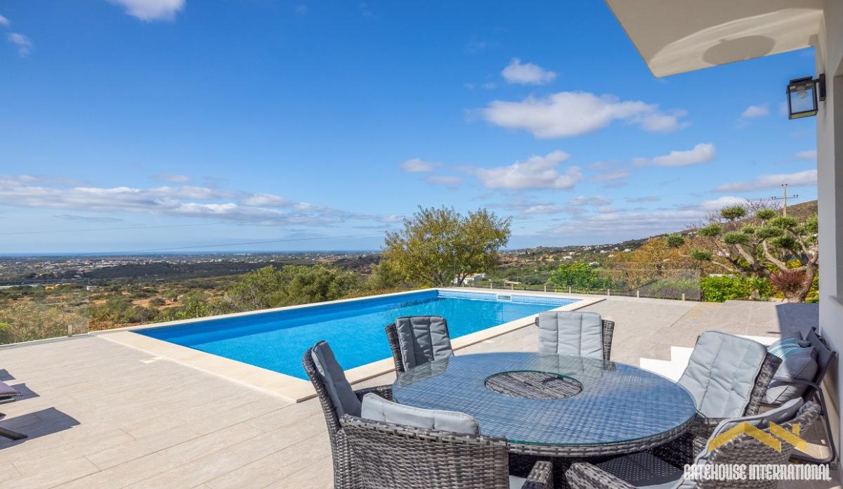 6 Bed Villa With Guest Cottage & Studio in Santa Barbara Algarve - a stunning sea view 3-bedroom main villa with all en-suite bathrooms and a roof terrace, a 2-bedroom cottage with a large lounge, high ceilings plus a private terrace and a 1-bedroom studio with self-contained lounge/kitchenette. The main villa features 3 en-suite bedrooms, an open-plan living room with dining area with sea views, a fitted and equipped kitchen with a central island and breakfast space with a superb sea view. There is a one-bedroom studio and a spacious 2-bedroom cottage. Outside is a swimming pool, terraces, BBQ and Al fresco dining areas, parking spaces and gardens. Main villa: - open plan living room with dining space - fitted and equipped kitchen with a central island and breakfast space - 3 bedrooms - 3 bathrooms Cottage: - living and dining area - kitchen - 2 bedrooms - 2 bathrooms Studio: - living area with kitchenette - bedroom area - bathroom Exterior: - swimming pool - terraces - BBQ and Al fresco dining areas - parking spaces - gardens Santa Barbara de Nexe is a small and quiet village with excellent views from a height of about 370 m down to the lowlands between the city of Faro, Olhao, the Ria Formosa and the Atlantic Ocean. The main attraction is the igreja Matriz, the Gothic church, which is located above the main road. The church from the 15th century contains the typical elements of the Manueline style: stone-carved decorations such as ropes, nets and corals on the ceiling and pillars, as well as beautiful old Azulejos. The village is located within approximately 20 20-minute' drive from the beaches, 7 minutes from the Mar Shopping Centre & Outlet and 25 minutes from Faro international Airport.