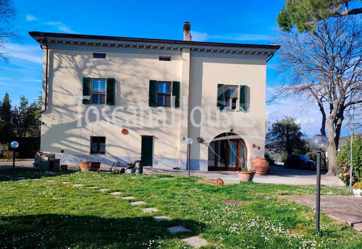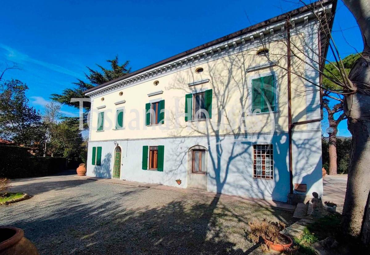 in a green, scenic location just 14 km from the sea, we offer for sale this prestigious historic villa from the late 1700s, situated in the picturesque village of Santa Luce. The village name, documented since 877, derives from the medieval "Sancta ad Lucam" and is rich in history, with traces of the medieval fortress and a Romanesque church.