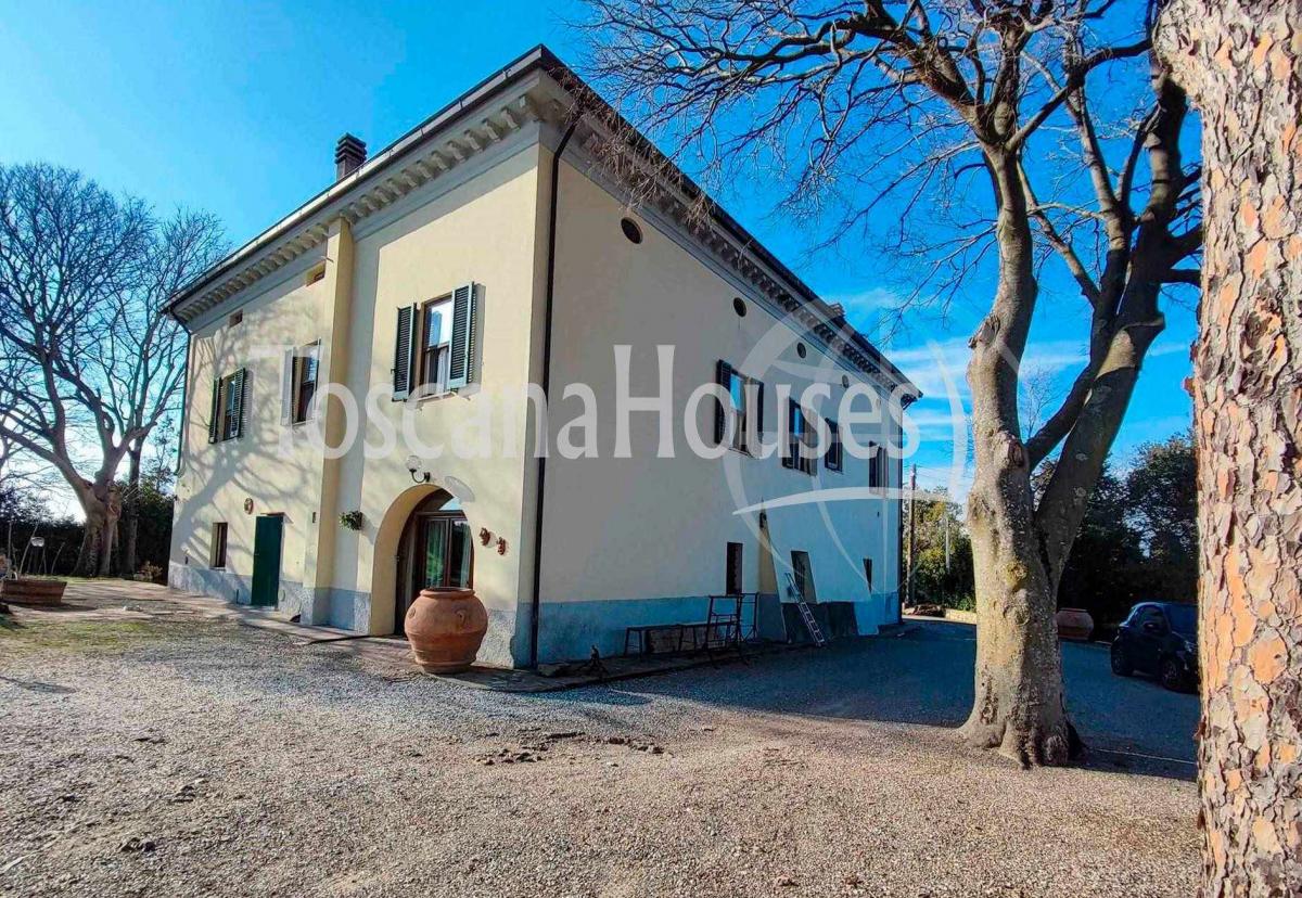 in a green, scenic location just 14 km from the sea, we offer for sale this prestigious historic villa from the late 1700s, situated in the picturesque village of Santa Luce. The village name, documented since 877, derives from the medieval "Sancta ad Lucam" and is rich in history, with traces of the medieval fortress and a Romanesque church.