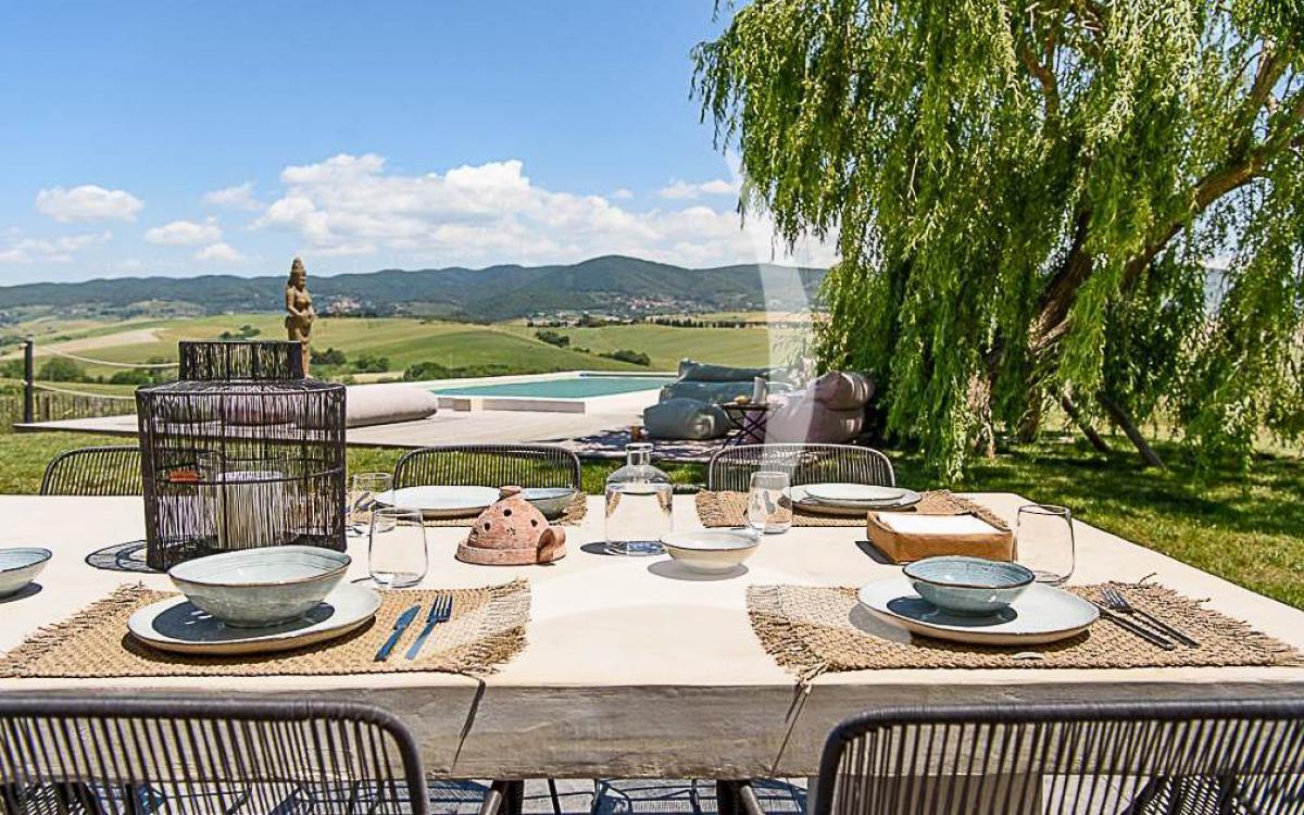 Access is via a short 800-meter white road that ensures privacy and spectacular 360-degree views while maintaining proximity to essential services. Additional features include mosquito screens, Dyson fans, Starlink internet, a water softener, and GPL heating.