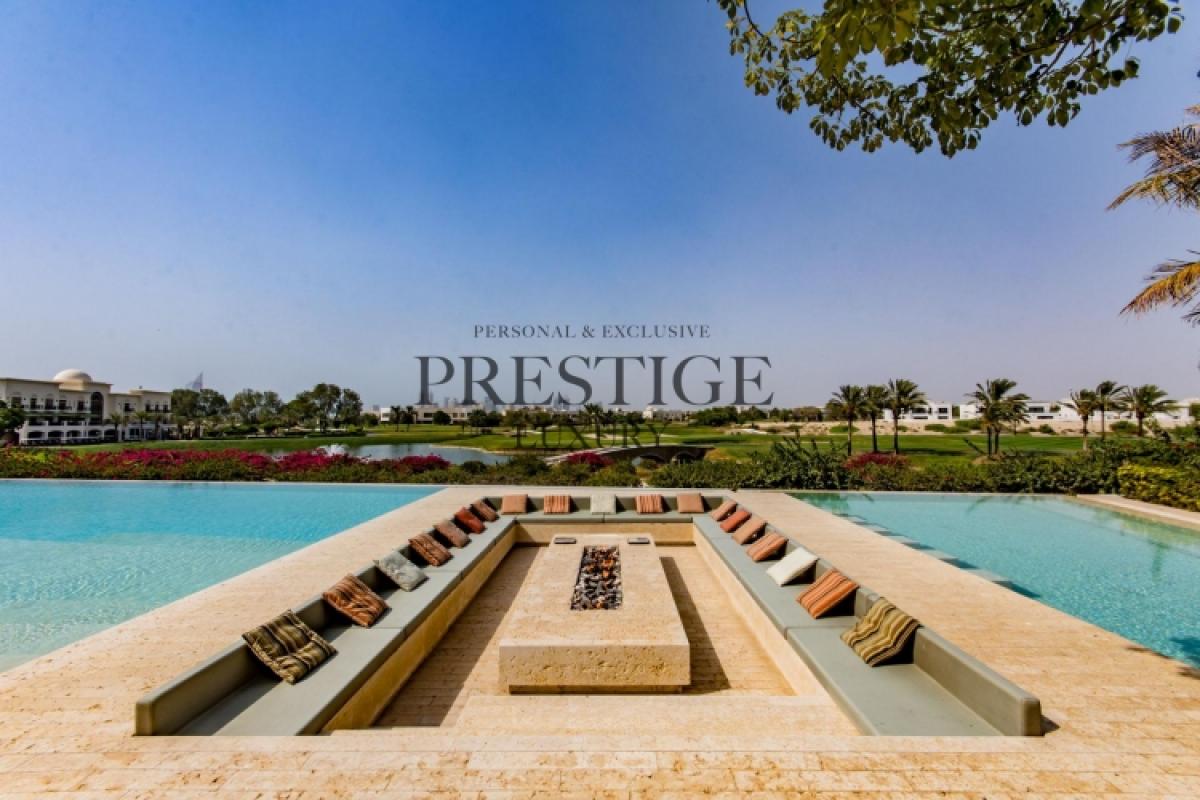 Prestige is proud to present one of the most unique villa in Emirates Hills which has been very thoughtfully designed and has uninterrupted Gold Course and Dubai Skyline View BUA 26,000 sqft PLOT 34,050 sqft Grand entrance lobby Incredible golf course and skyline views Finest architectural designers Large formal dining room open to the terrace 2 kitchens (Family full chefs kitchen) Basement parking and games room Swimming pool/JacuzziEach and every aspect and detail of the villa has been very thoughtfully planned for one to appreciate the spectacular views from each and every corner of the villa. The modern design of the villa compliments its uniqueness and sophistication, and style. It features a lift inside the house, has a gorgeous infinity swimming pool, sunken fire pit, two (2) modern kitchens with oak wood finish, large basement that can accommodate several cars and has beautifully designed massive outdoor spaces best for entertainment, and family events.