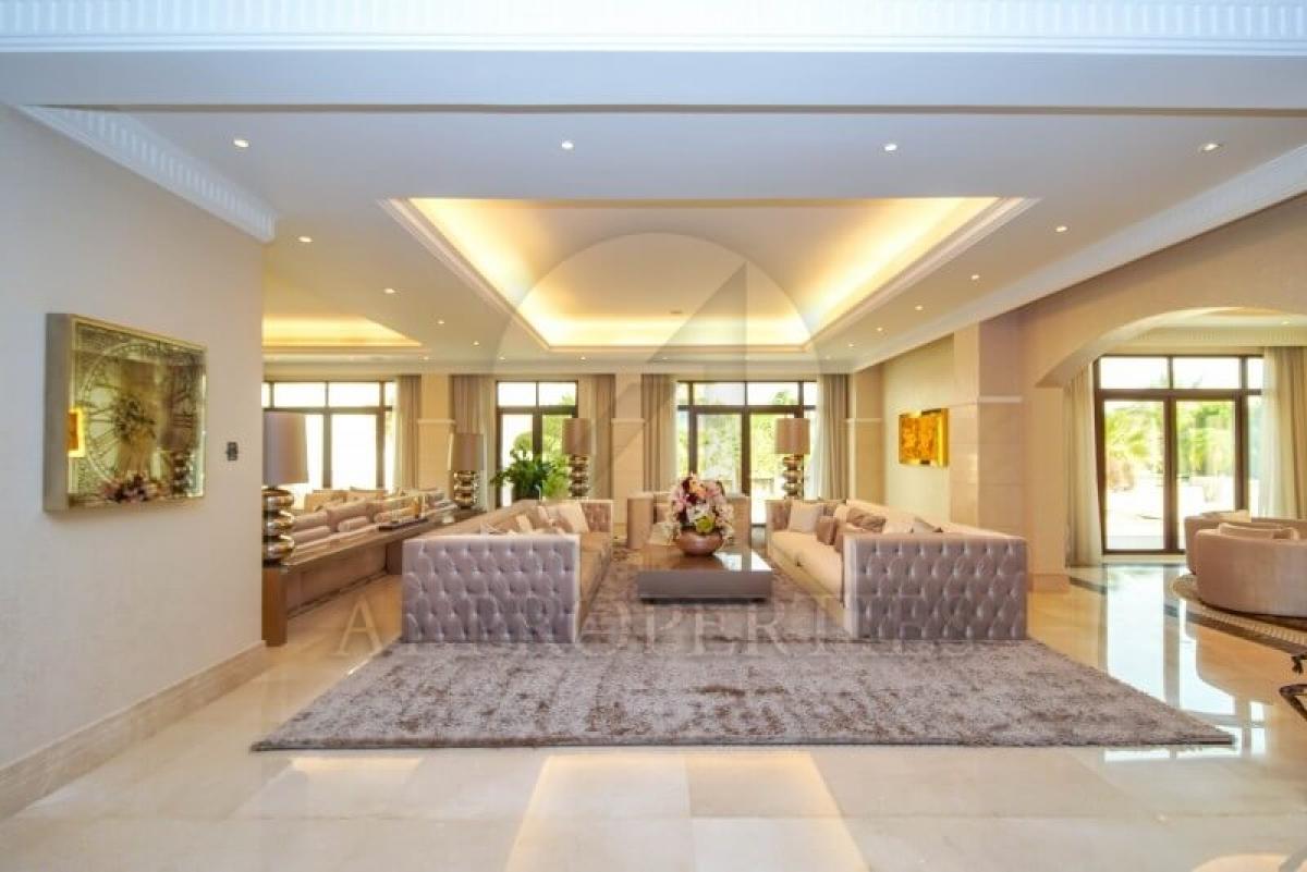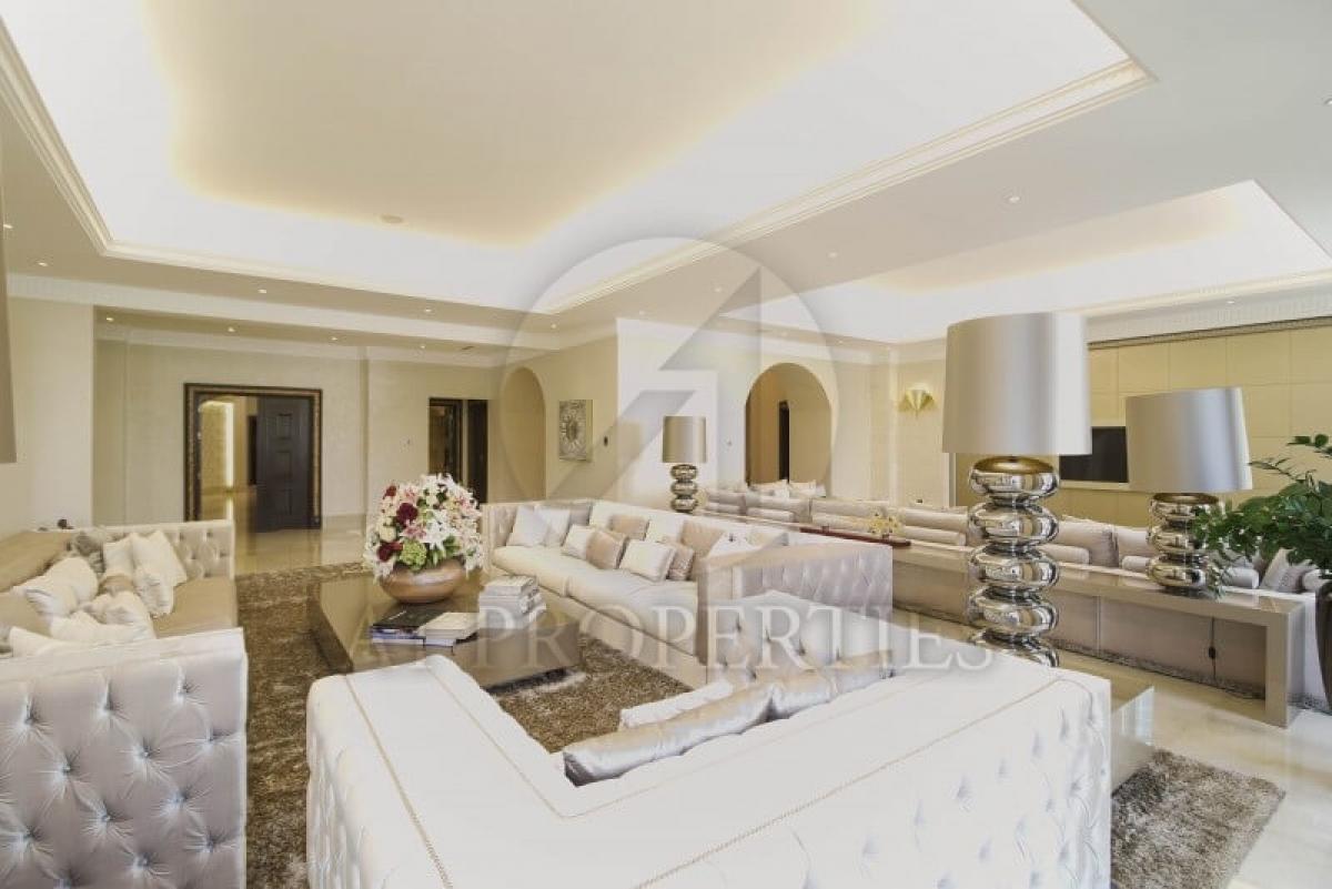 A1 Properties is honored to offer to the market this spectacular villa with a stunning golf course view in L Sector.This property is one of the most exquisite and very exclusive luxury villas in Emirates Hills.-8 Bedrooms all en suite-4 maid's rooms-Full golf course view-BUA: Approx. 24,000 sqft-Plot: Approx. 40,000 sqft-Large car park space-2 Kitchens and much more,-Vacant on transferThe design concept was created taking into consideration the mixture of modernity, luxury and Metropolitan contemporary finishing.Unique architectural design with villa blocks intertwined creates a striking interior impression, also plays a vital role in exterior design. Villa space layout designed to ensure a good view from every room and intention to make views of landscape an integral part of the interior.This signature villa combines a complex solution of innovative ideas in space layout and use of materials, where wood gives warms to the interior balancing out the coldness of marble and metal finishes.